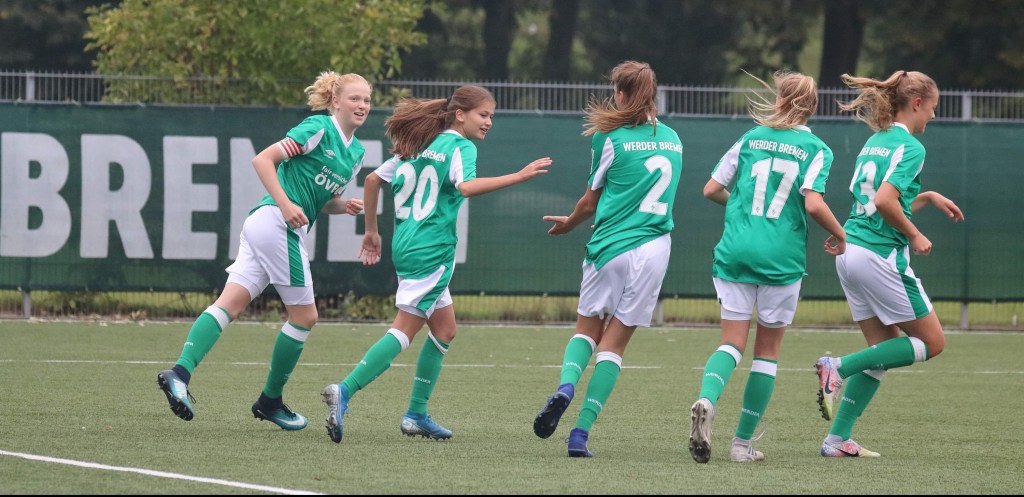Schon zur Pause führten die Werder-Talente mit 6:0, durch Tore von Melina K. (5./22.), Jette B. (12.), Theda G. (14.), Lena G. (23.) und Wienke R. (34.).