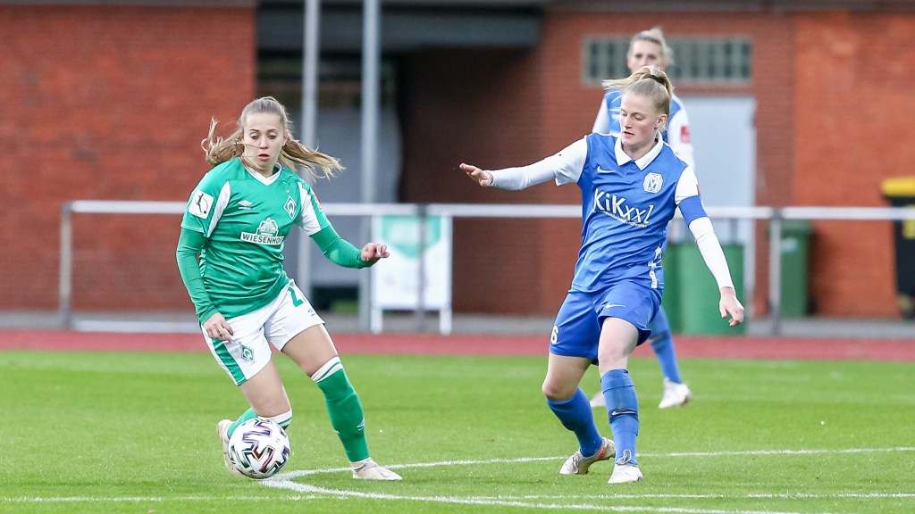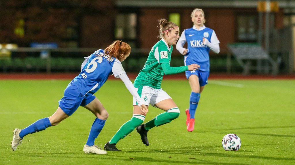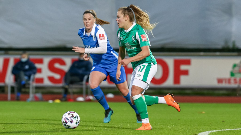 v.li.: Lina Hausicke (SV Werder Bremen, 18) am Ball (Foto: Oliver Baumgart) -