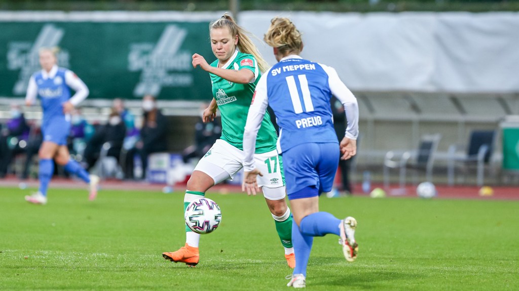 In einem wahren Krimi gewinnen die Werder Frauen mit 2:1 gegen den SV Meppen und verlassen damit die Abstiegsplätze (Platz 10).