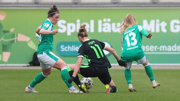 Der Gegner: Die Gastgeberinnen vom VFL Wolfsburg benötigen unbedingt einen Sieg und die Schützenhilfe von Eintracht Frankfurt, die gegen Bayern München gewinnen müssen, damit die Wölfinnen die Münchnerinnen noch einholen können. Am letzten Wochenende konnte das Team von Werders Exspielerin Pia Wolter den DFB-Pokal gewinnen.