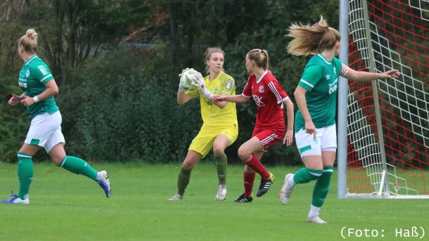Die erste Hälfte ging klar an Buntentor und es war Anneke Borbe zu verdanken, die dreimal glänzend parierte. In der 25. Minute ,als Franziska Gieseke allein vor Werders Tor lief, in der 29. Minute lenkte sie einen Fernschuss von Alina Stenzel ins Aus und in der 32. Minute, als Svenja Welkenbach allein vor das grün-weiße Tor zulief, verkürzte Werders Schlussfrau den Winkel geschickt und der Schuss ging dann direkt in Borbe’s Arme.