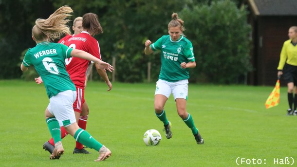 Sven Gudegast konnte in dieser Begegnung auf zwei Spielerinnen der Ersten zugreifen. Im Tor stand Anneke Borbe und Rieke Dieckmann lenkte das Werder-Spiel vom zentralen Mittelfeld aus.
