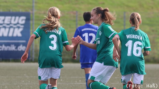 Auch nach der Pause dominierten die Werder-Talente die Partie. Nach dem 5:0 in der 44. Minute treten sie dann so richtig auf. Die folgenden Tore fielen quasi fast in Minutentakt (51./53./55./57./59./60./62. und 69.). Die Jungs aus Habenhausen konnten einem schon fast leid tun. Mit 14:0 gingen die U15-Juniorinnen auch in der Höhe als verdiente Siegerinnen vom Platz. Die Sieg hätte gar noch höher ausfallen können, so überlegen war das grün-weiße Team.