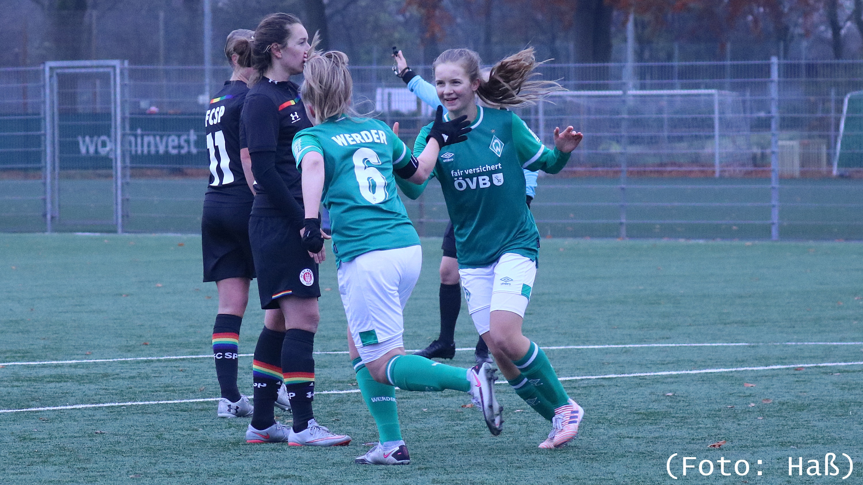 Sven Gudegast stellte nach der Halbzeit sein Team taktisch um, was auch fruchten sollte. Die Defensive agierte sicherer und konzentrierter. In der 50. Minute wurde eine Grün-weiße im gegnerischen Strafraum umgerissen und die Schiedsrichterin zeigte, trotz Proteste von St. Pauli, auf dem Punkt. Paula Rößeling traf sicher zur 3:2 Führung. Nur kurze Zeit später war St. Pauli mit einer Spielerin weniger auf dem Platz, weil Diese wegen Meckern Gelb-Rot sah. Sicherlich ein spielentscheidender Punkt in der Partie. Danach dominierte Grün-weiß. Zweimal Monique Bertram (69./83.) und einmal Virginia Sinani, in der 88. Minute, sorgten für den 6:2 Erfolg.