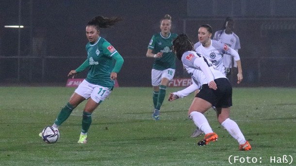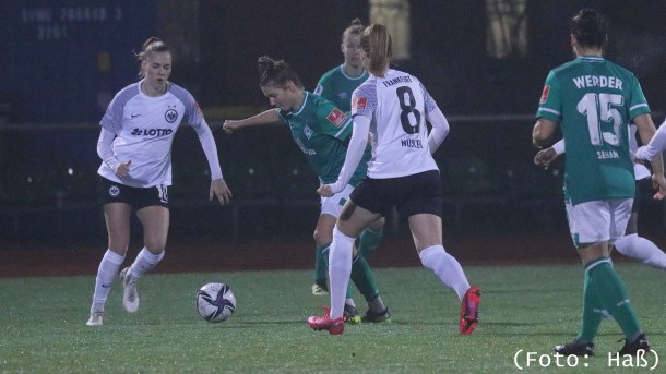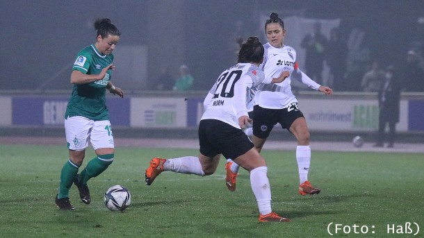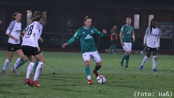 Mit 1:0 gewinnen die Werder-Frauen gegen Eintracht Frankfurt im letzten Hinrundenspiel und können sich damit Luft zu den Abstiegsrängen verschaffen.