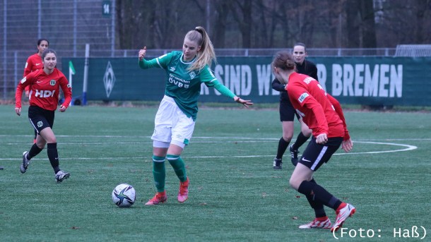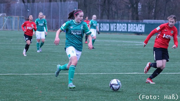 Zunächst war es eine ausgeglichene Partie, wo beide Teams bemüht waren in Führung zu gehen. In der 18. Minute traf dann Emily für die Grün-Weißen. Emma konnte in der 25. Minute per Elfmeter gar auf 2:0 erhöhen. Hannover blieb die ganze Zeit über Konter gefährlich, waren jedoch nicht konsequent für genug im Abschluss. die 2:0 Führung zur Halbzeitpause war somit nicht unverdient, agierte das Team von Alexander Kluge cleverer.