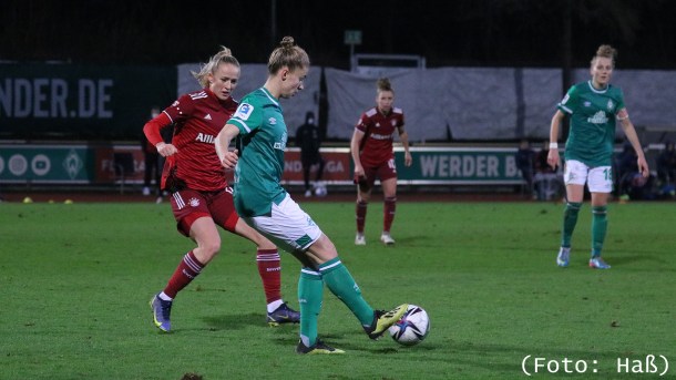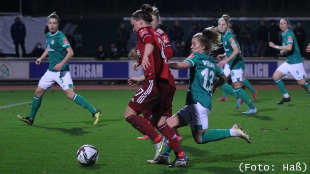 Die Frauen des SV Werder Bremen leisteten mächtig Gegenwehr im 1. Spiel der Rückrunde gegen den hochfavorisierten Gast aus München. Trotz frühen Gegentors gaben sie sich nicht auf und hielten leidenschaftlich dagegen und lauerten auf Konter. Erst in der Nachspielzeit fiel die Entscheidung zum 0:2.