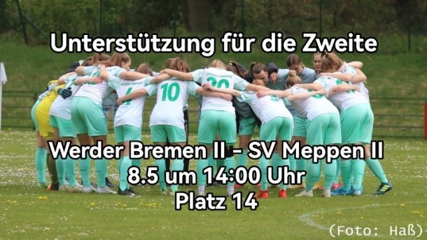 Am kommenden Sonntag um 14:00 Uhr auf Platz 14 heißt der nächste Gegner Meppen II. Das Spiel startet 2 Stunden vor der Erstligabegnung Werder Bremen – TSG Hoffenheim, unweit von Platz 11. Die Mädels von der Zweiten brauchen nun in der schwierigen Situation jeder Unterstützung von uns Werder-Fans und würden sich sehr darüber freuen, wenn sie diese auch von uns bekommen würden. Dieses haben sie mehr wie verdient.