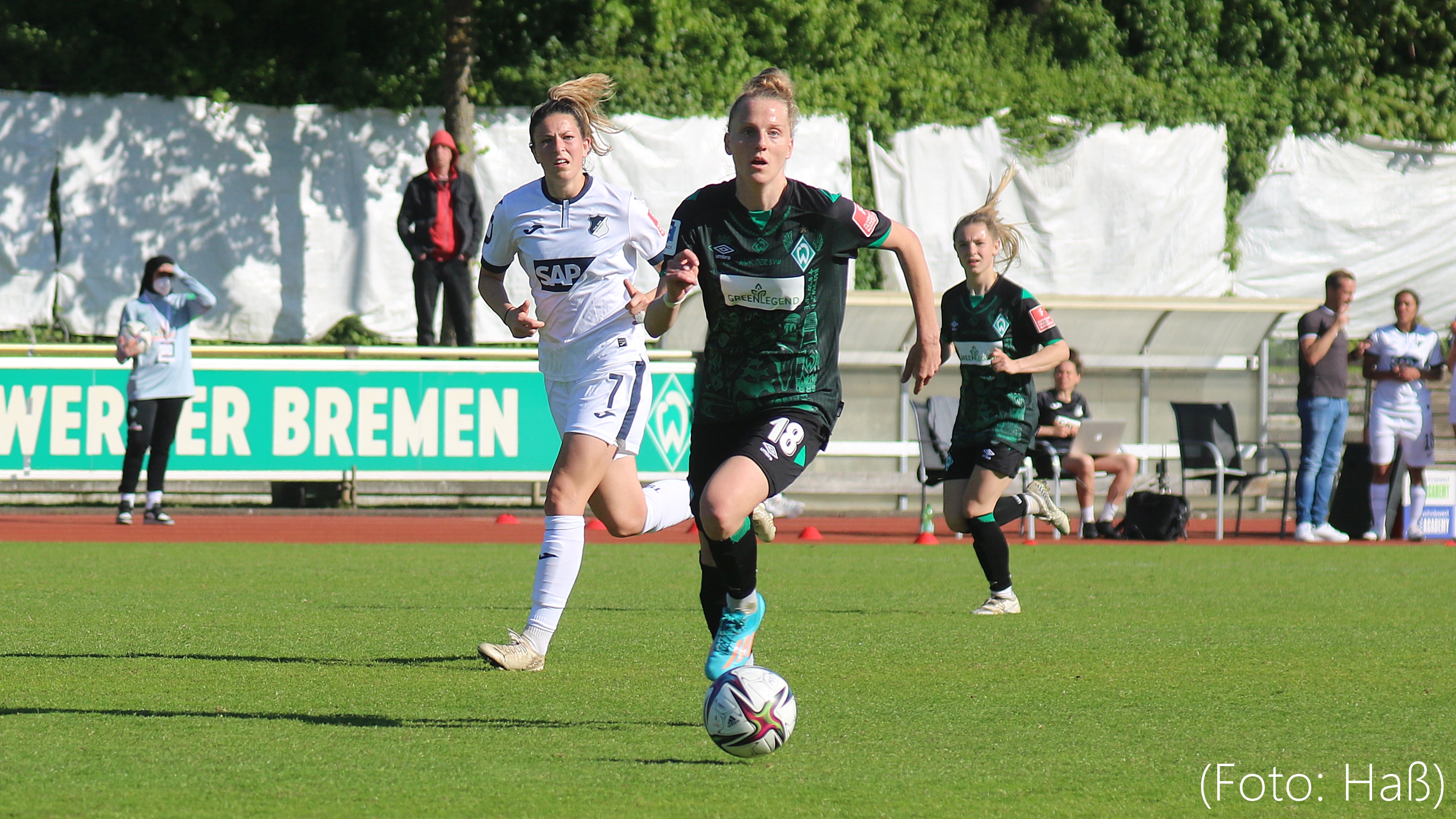 Werder Bremen hielt in diesem Spiel gut dagegen und ein Remis wäre sicherlich auch gerecht gewesen, jedoch gewann Hoffenheim, weil sie ein wenig cleverer waren als die Grün-Weißen. Diese konnten jedoch mit erhobenem Haupt den Platz verlassen. Sie ließen den Gästen nur wenig Möglichkeiten zu und waren ein ebenbürtiger Gegner. Da die SGS Essen in Freiburg mit 3:0 verloren, kann Werder Bremen auch nicht mehr vom 9. Platz der Tabelle gedrängt werden.