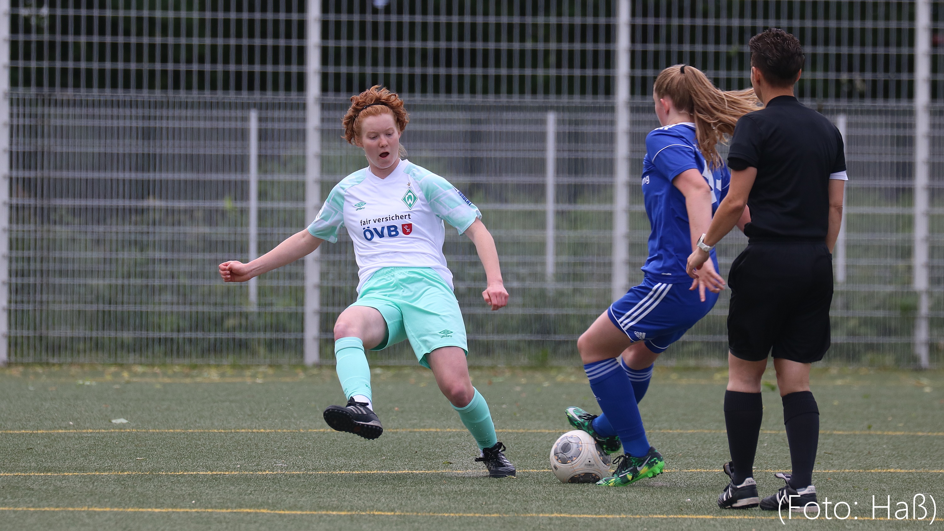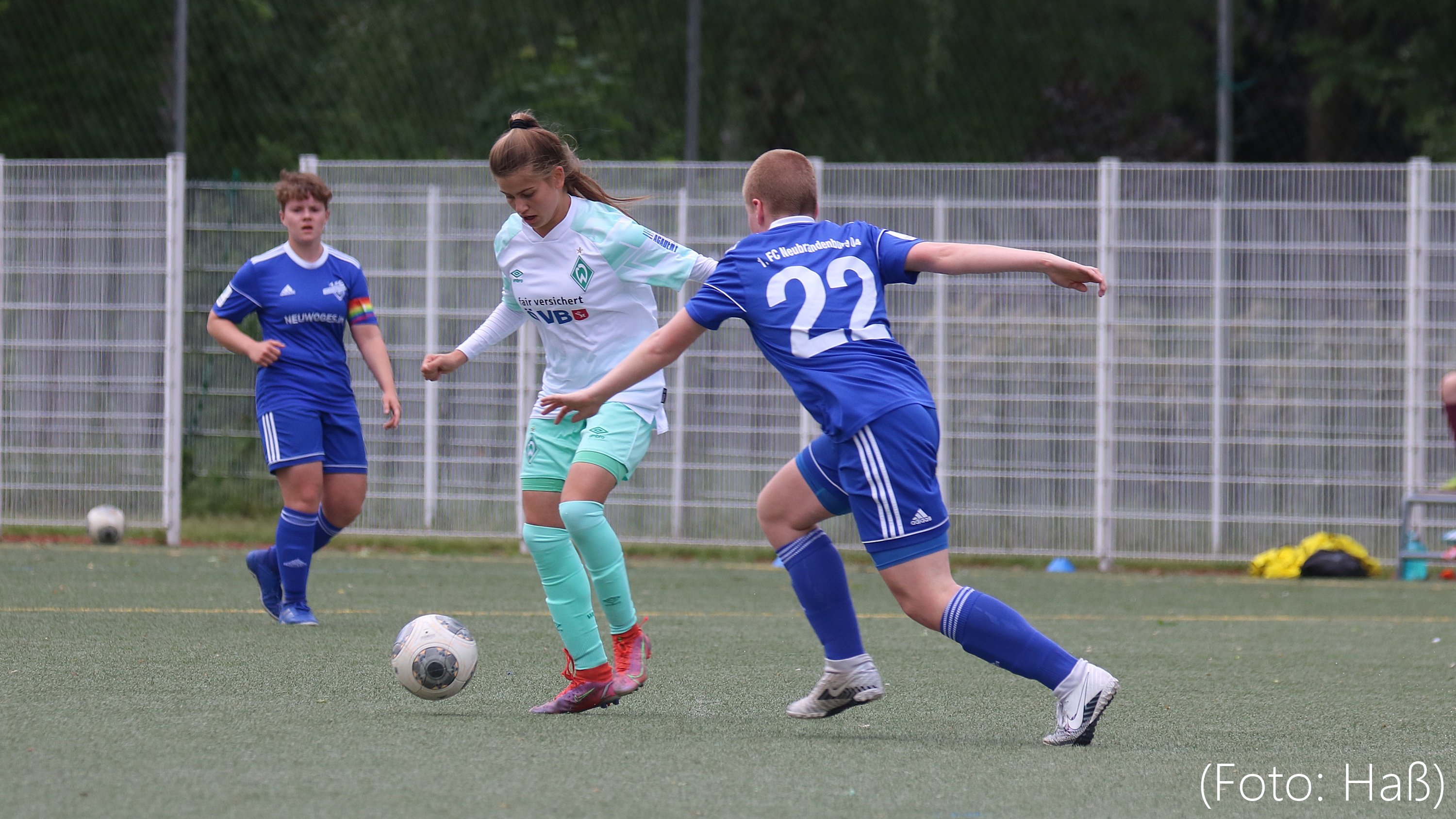 Die Werder-Talente machten schon in der 1. Halbzeit das Spiel, kamen aber zunächst zu keinen wirklich gefährlichen Torabschlüssen. Die Gastgeberinnen agierten defensiv und setzten auf Konter. Gleich der erste führte in der 22. Minute zum 1:0 für Neubrandenburg. Werder konnte aber schnell durch ein Kopfballtor von Jule L. ausgleichen (24.). Bis zum Pausenpfiff hätte die Grün-Weißen in Führung gehen können, ließen aber noch gute Möglichkeiten aus.