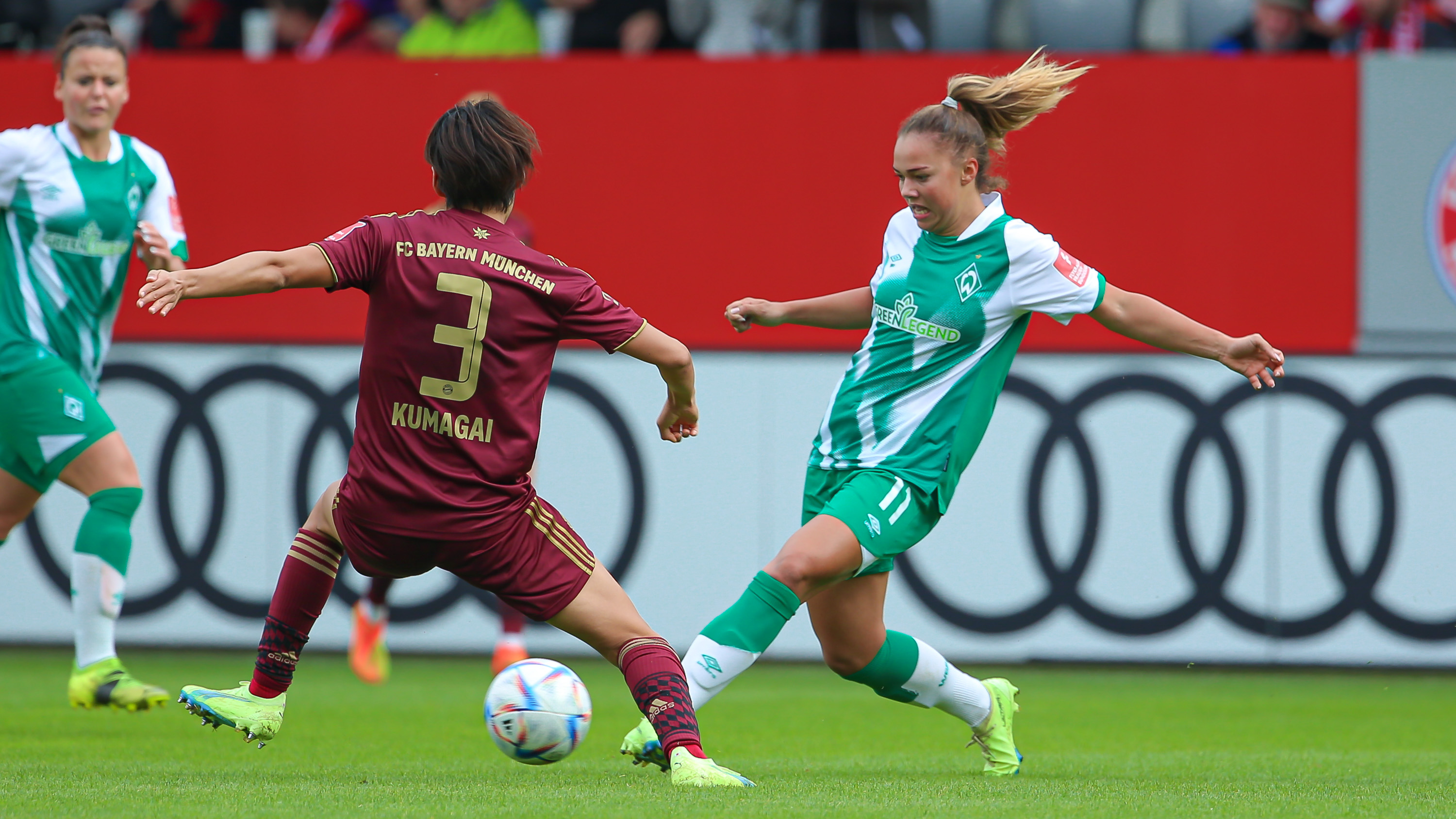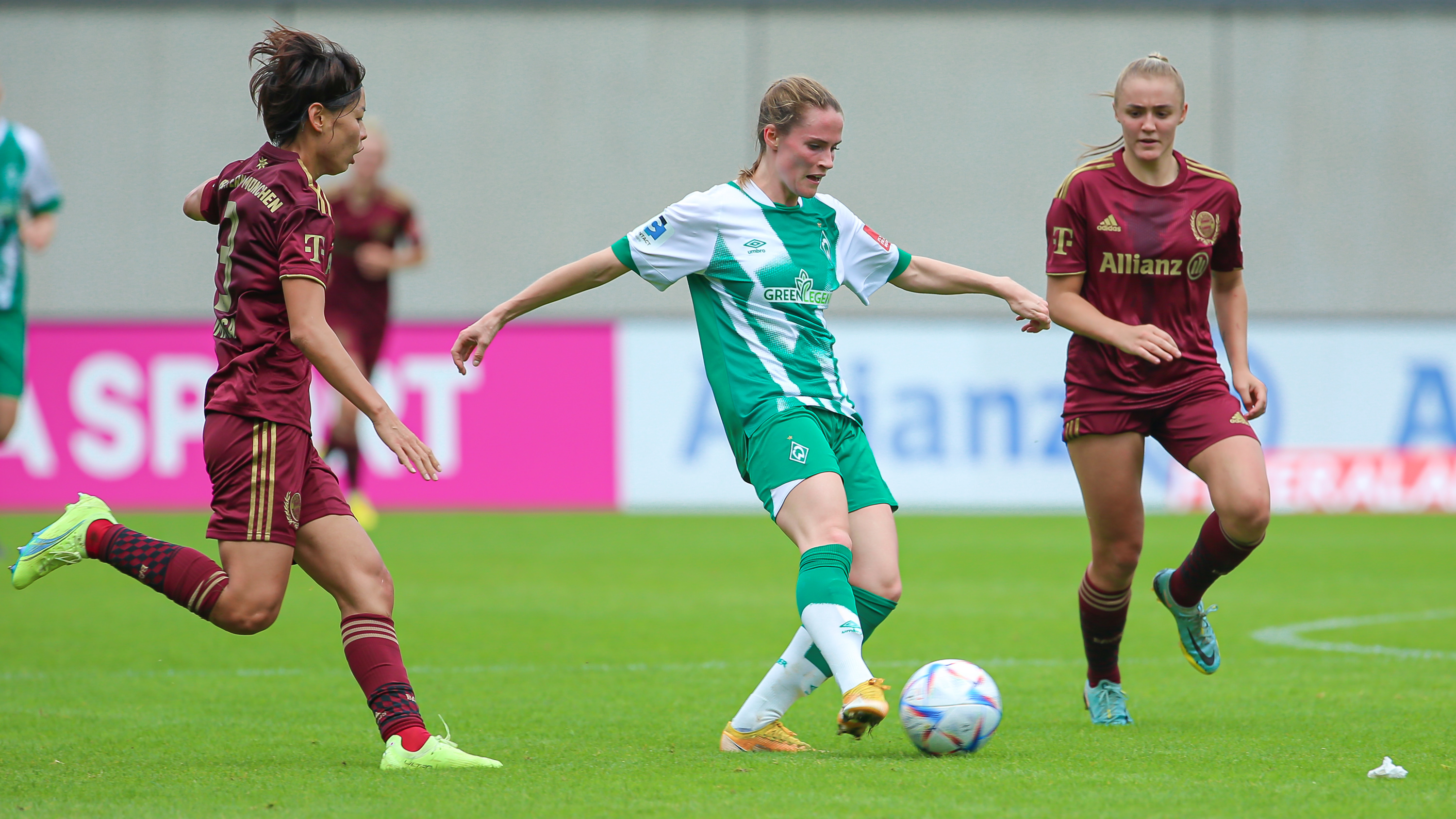 Im 2. Spiel der FLYERALARM-FRAUEN-BUNDESLIGA reisten die Werder-Frauen zum FC Bayern München. Leider mussten sie sich mit 3:0 geschlagen geben, wobei sie dem Titelaspiranten alles abverlangt haben.