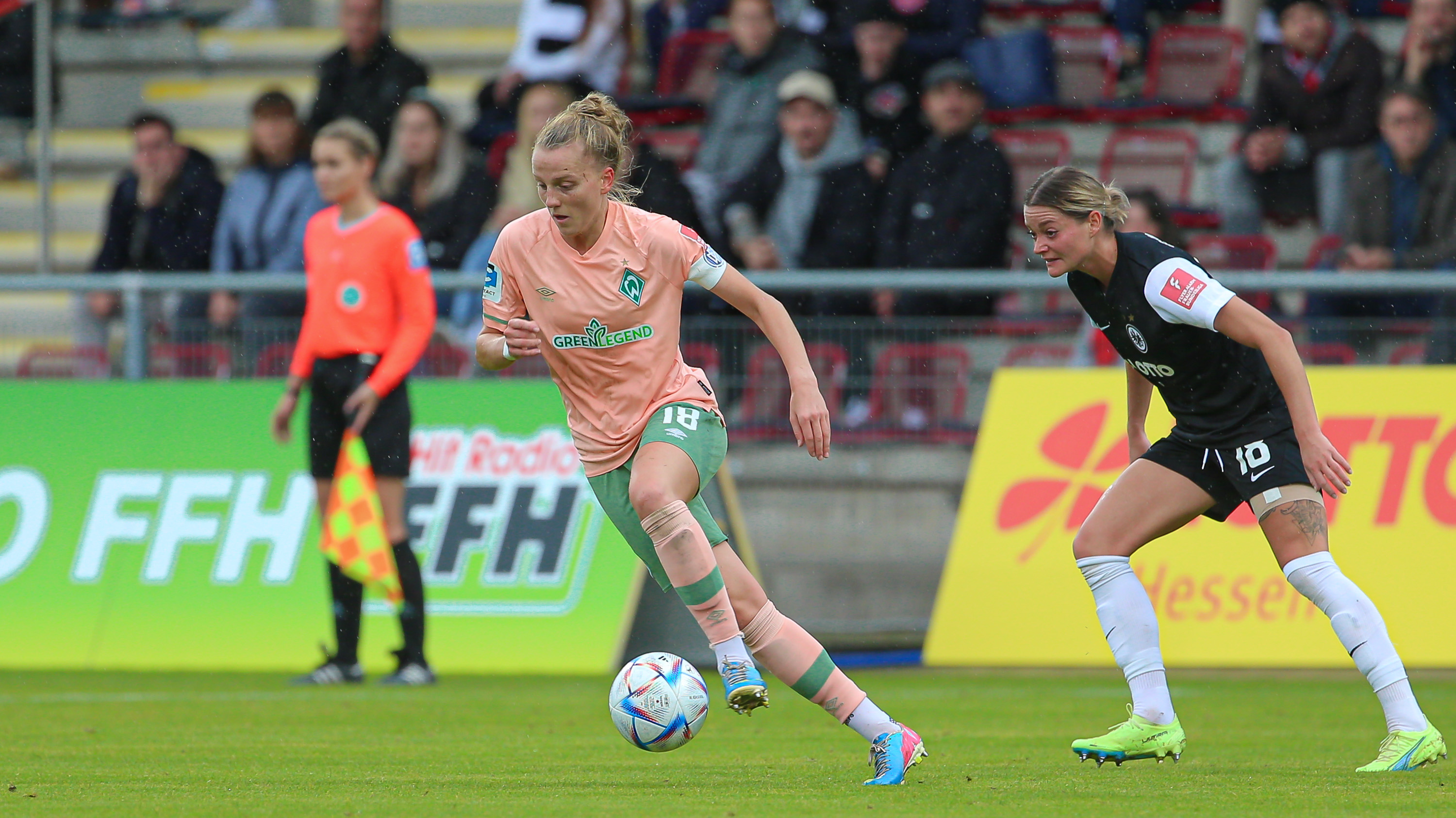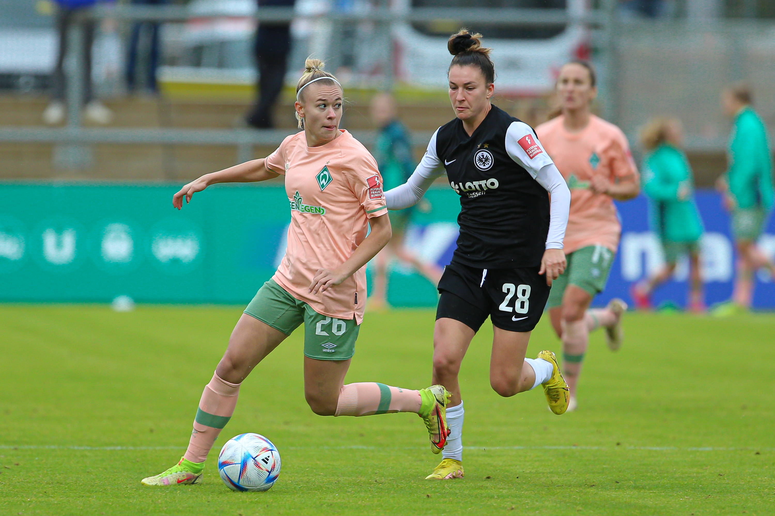 In einer packenden Partie, wo Eintracht Frankfurt über fast die gesamte Spielzeit die Begegnung kontrollierte, agierten die Werder-Frauen aus einer kompakten Defensive heraus und machten es den Gegnerinnen nicht einfach ins letzte Drittel zu kommen. Mit zunehmendem Druck wirkte jedoch die Abwehr nicht immer geordnet und so verhalfen individuelle Fehler den Gegnerinnen das Spiel schlussendlich mit 3:1 für sich zu entscheiden. Zwar konnte Werder in der Zwischenzeit, durch ein direktes „Eckentor“ von Nina Lührßen verkürzen, Das Spiel konnten sie jedoch leider nicht mehr drehen.