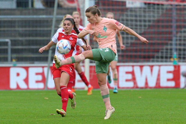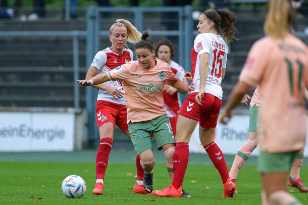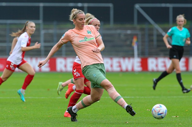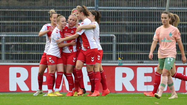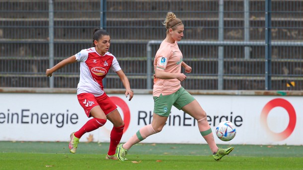 Das Team von Thomas Horsch spielte von Beginn an einen attraktiven und mutigen Offensivfußball. Köln rannte den Bremerinnen meist nur hinterher. Leider war es ein indivueller Fehler, der die Grün-Weißen in Rückstand brachte. Beuschlein traf in der 16. Minute für die Gastgeberinnen. Werder steckte nicht auf und spielten weiter gute Torchancen heraus, waren jedoch im Abschluss leider glücklos.