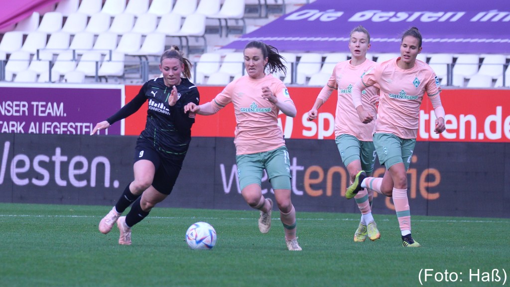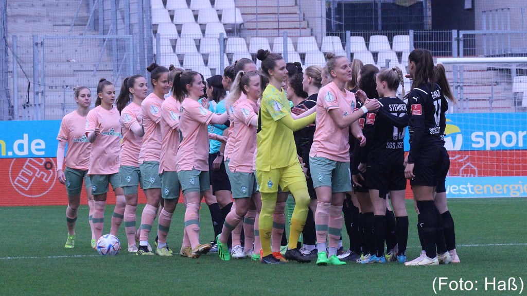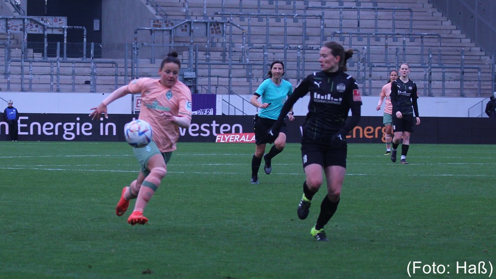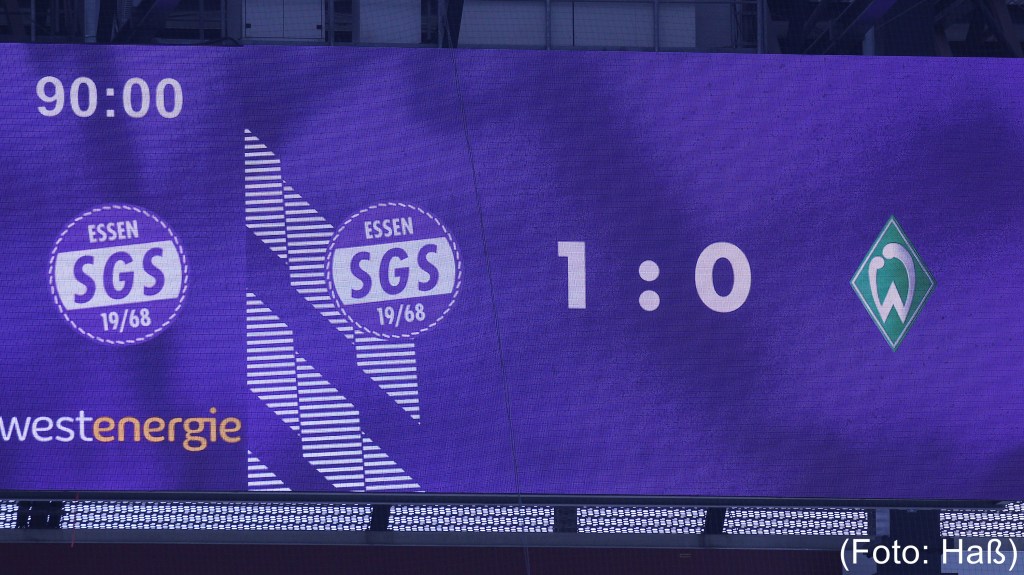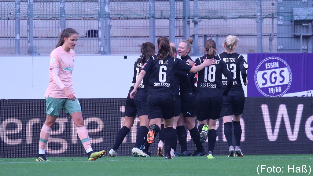 Mit 1:0 verlieren die Werder-Frauen beim DFB-Pokalachtelfinale bei der SGS Essen. Die ehemalige Werderspielerin Vivien Endemann traf für die SGS Essen in der 73. Minute durch Elfmeter.
