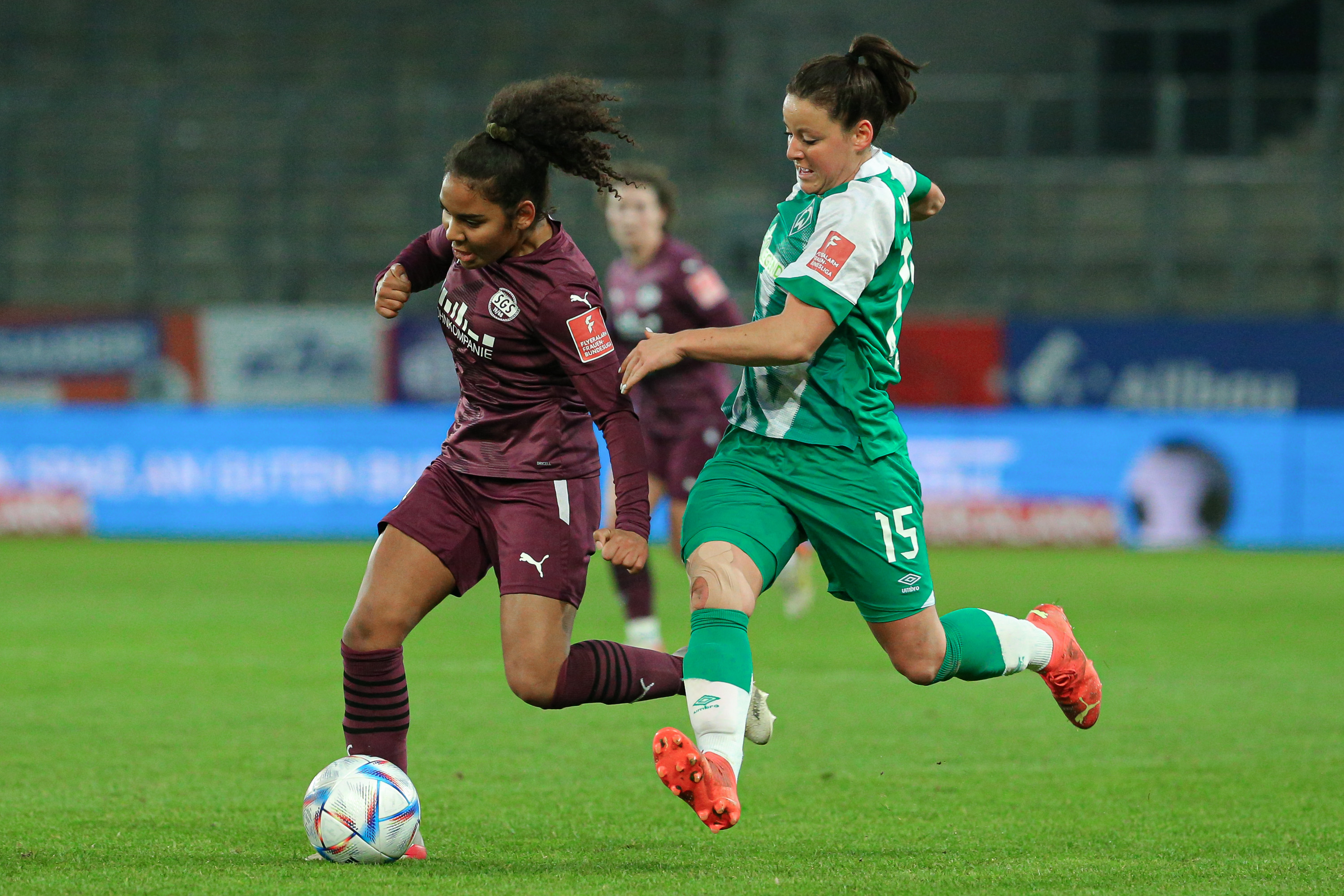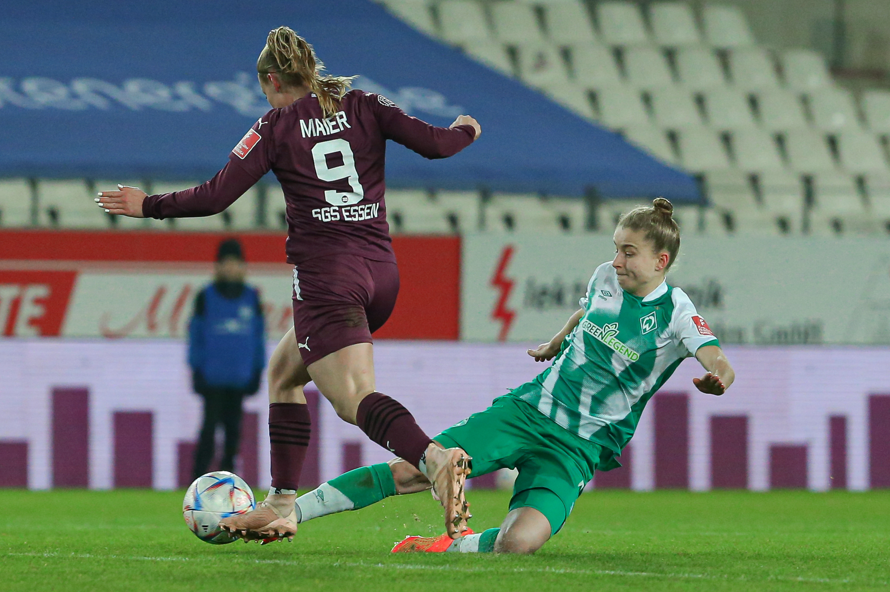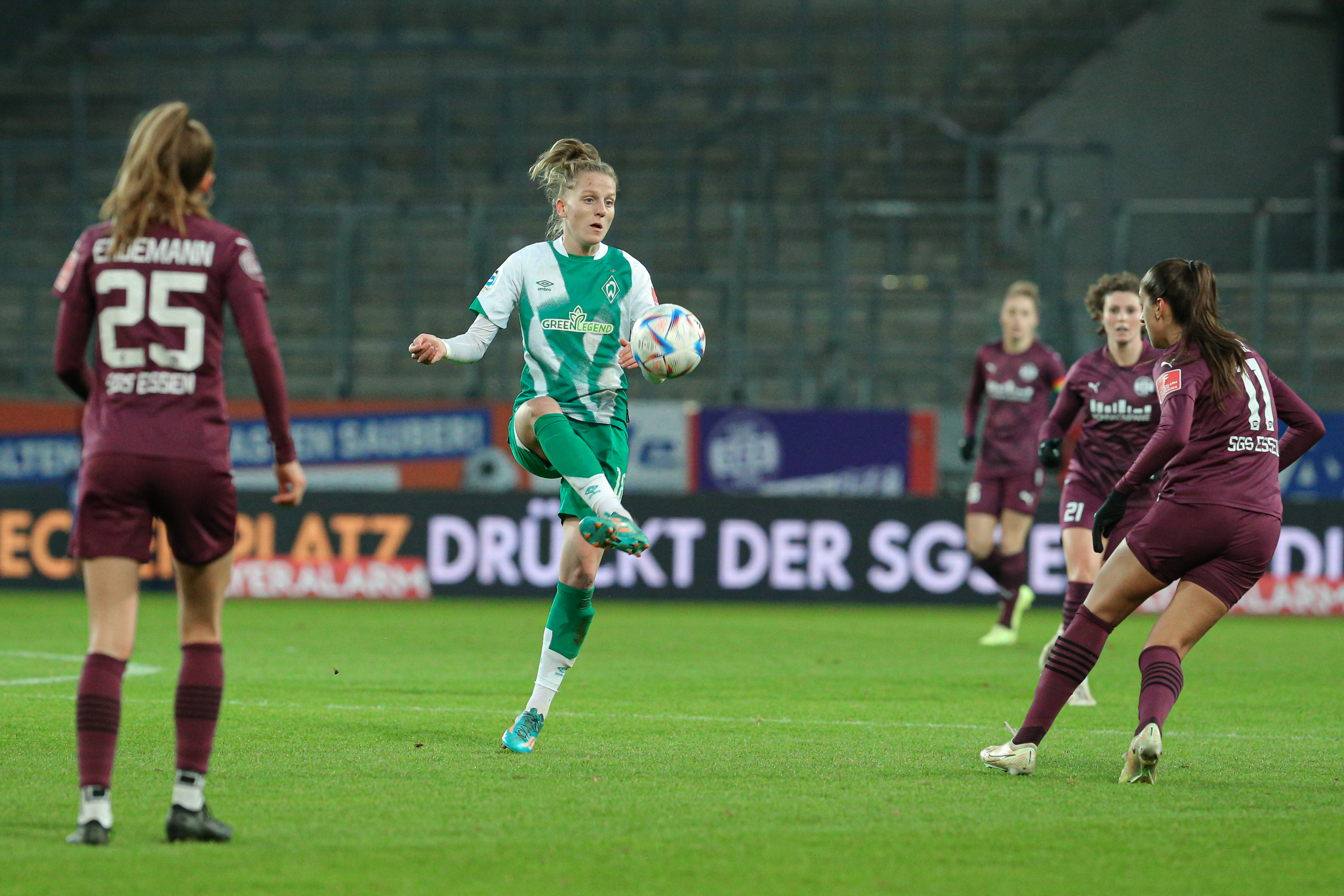 In einer kampfbetonten Begegnung schonten sich beide Teams nicht. Zu Beginn hatte Werdrr Bremen die bessere Einschussmöglichkeiten, jedoch fehlte es leider an Präzision vor dem Tor. Maja Sternad (7.) und zweimal Lina Hausicke (11./45+1) konnten diese leider nicht verwerten. Auch die Essenerinnen hatten ihre Chancen (29./38.), scheiterten oder diese wurden von Bremens Abwehr noch rechtzeitig geklärt. Das 0:0 in der Halbzeitpause entsprach somit auch dem Spielverlauf.