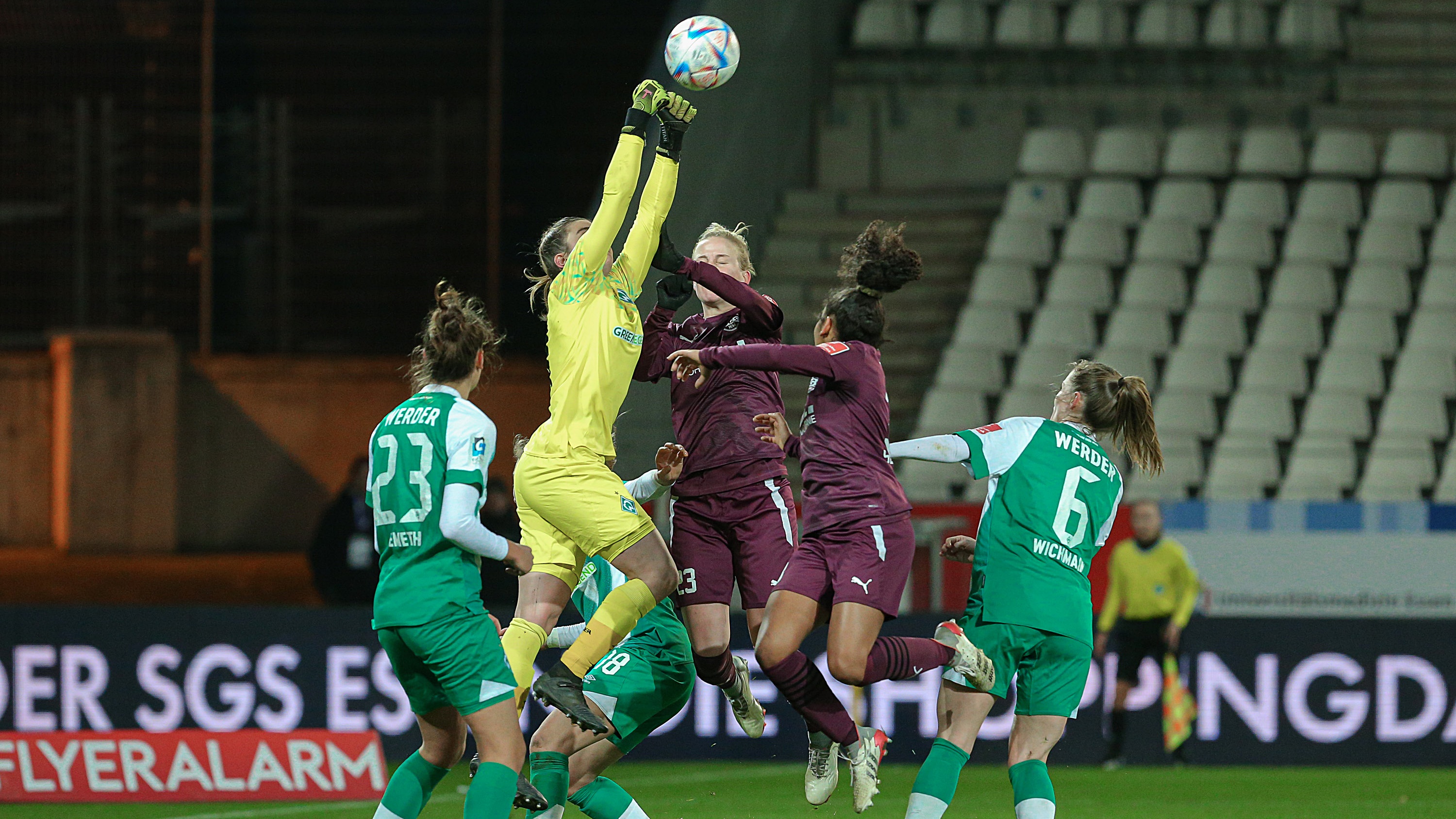 Am 9. Spieltag der FLYERALARM-FRAUEN-BUNDESLIGA trennen sich die SGS Essen und Werder Bremen 0:0. Dabei hatte die SGS durch einen umstrittenen Elfmeter, kurz vor Schluss, gar die Riesenmöglichkeit zum Sieg gehabt, diesen jedoch nicht nutzen können.