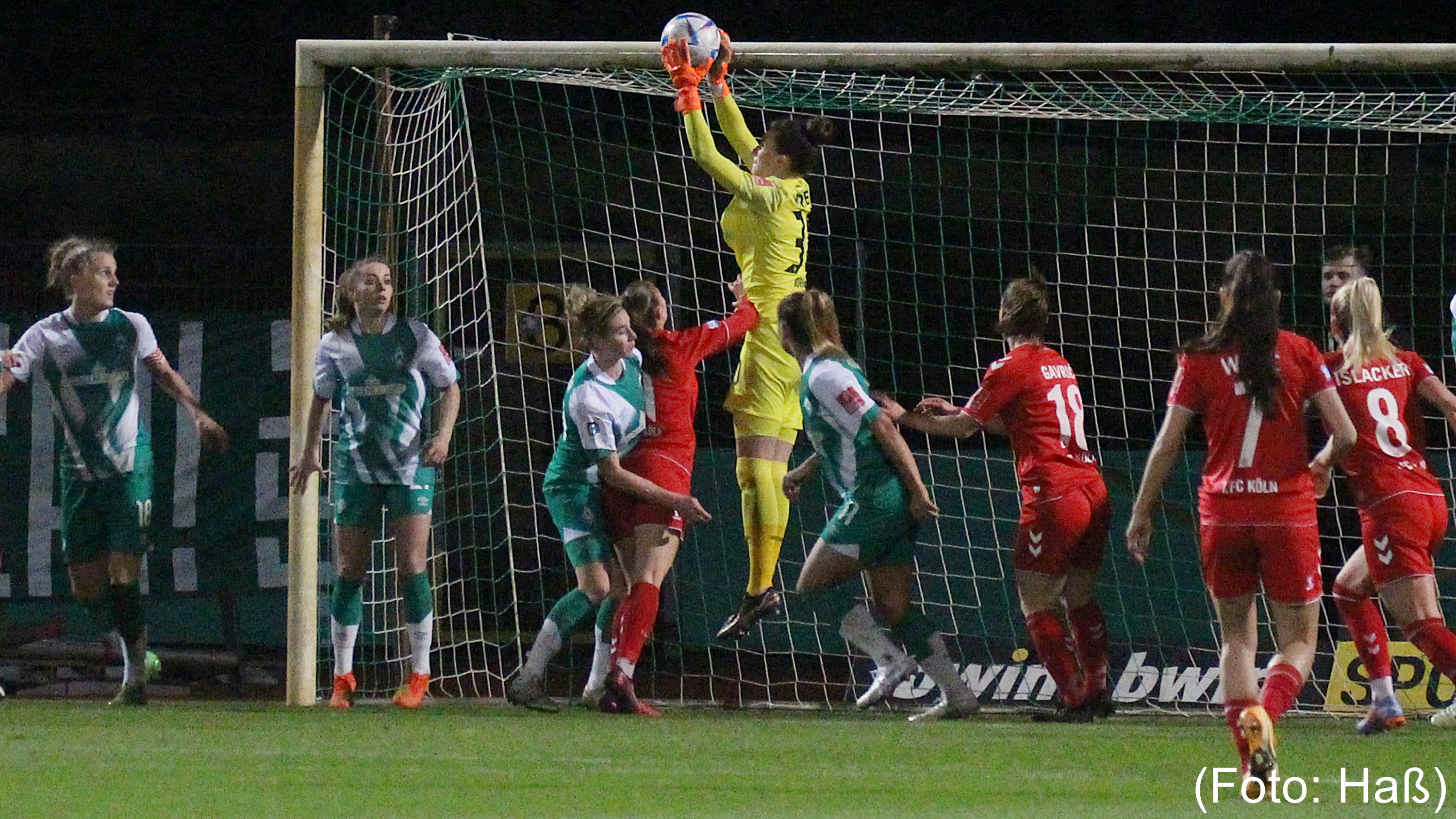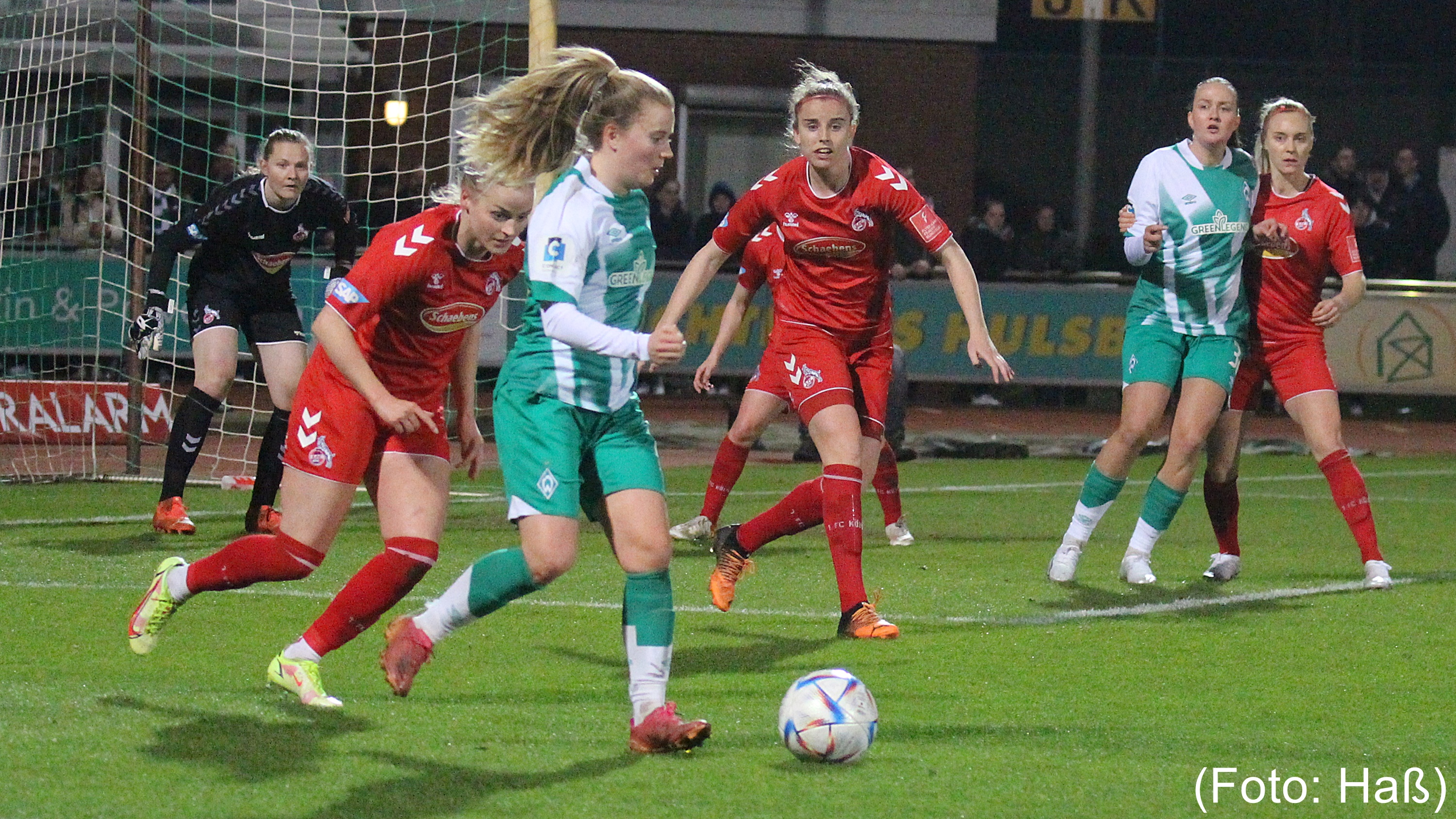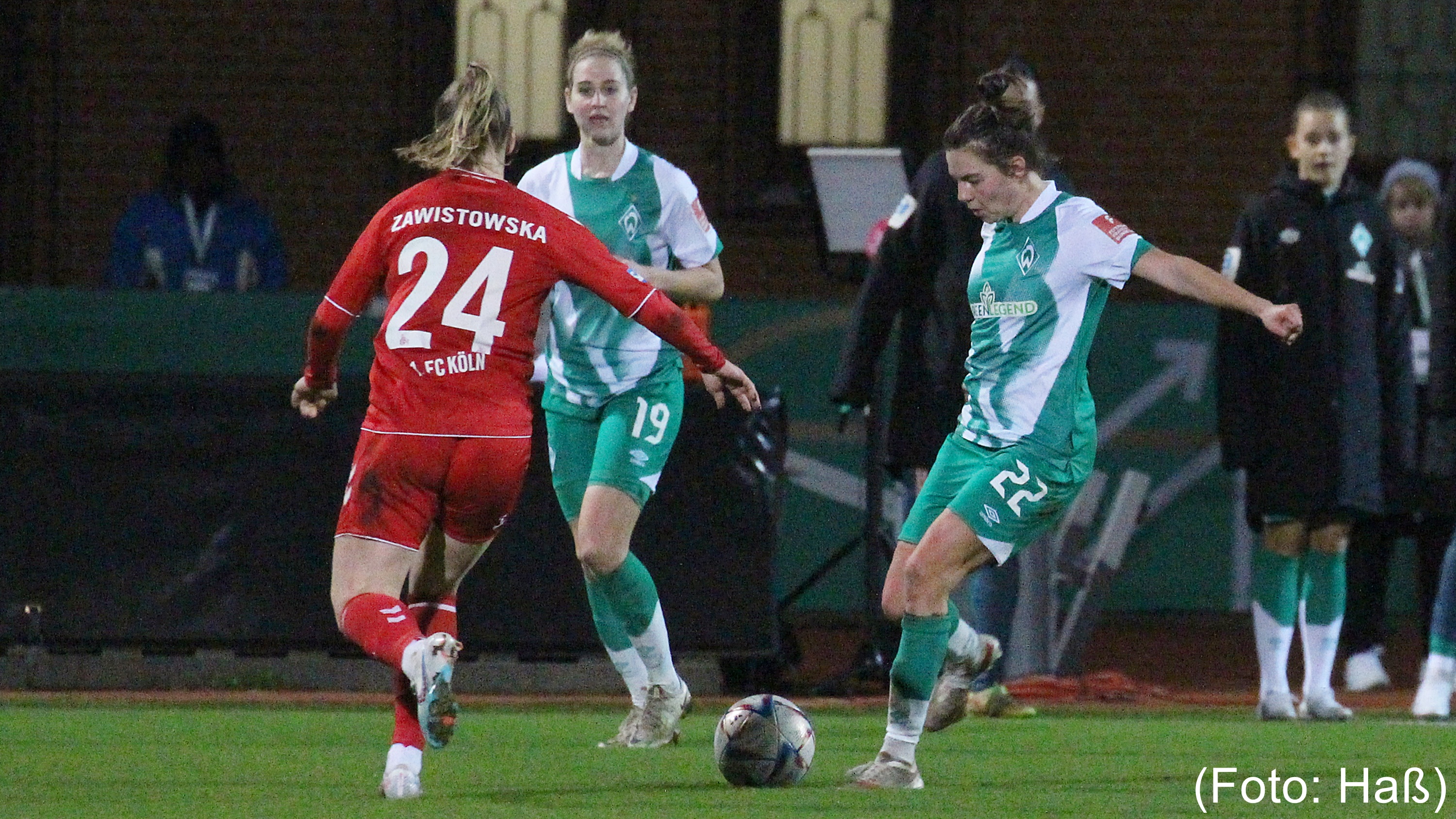 Am 16.Spieltag der FLYERALARM FRAUEN-BUNDESLIGA setzte sich das Bundesligateam des SV Werder Bremen vor einer stimmungsvollen Kulisse mit über 1700 Zuschauern gegen den 1. FC Köln mit 1:0 durch und konnte damit drei weitere wichtige Punkte im Kampf um den Klassenerhalt einfahren.