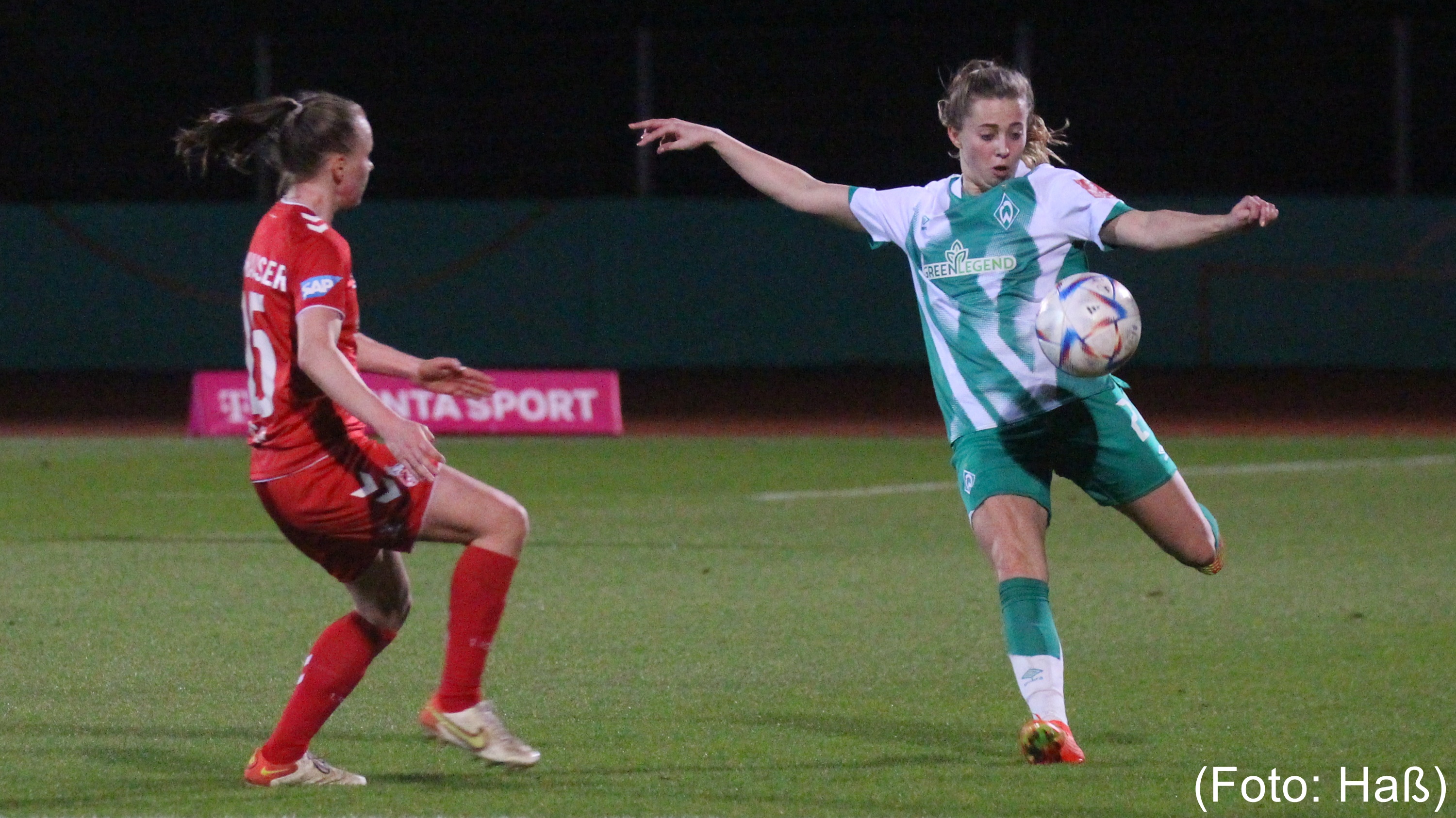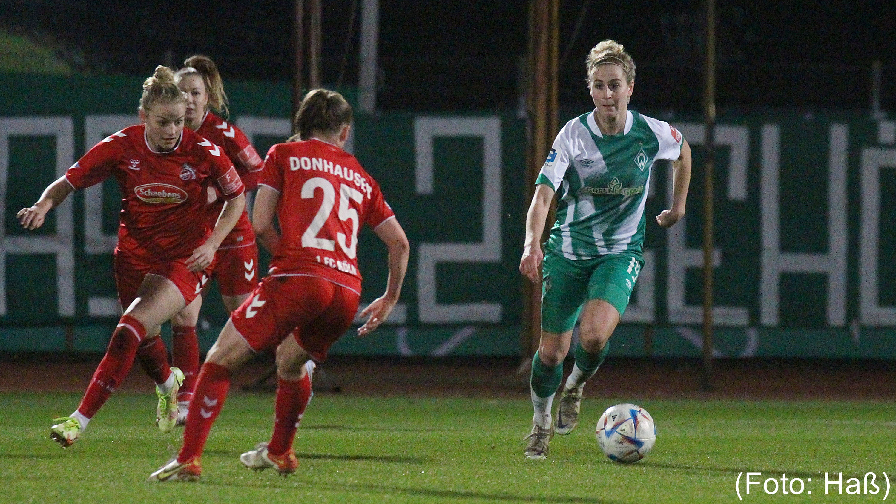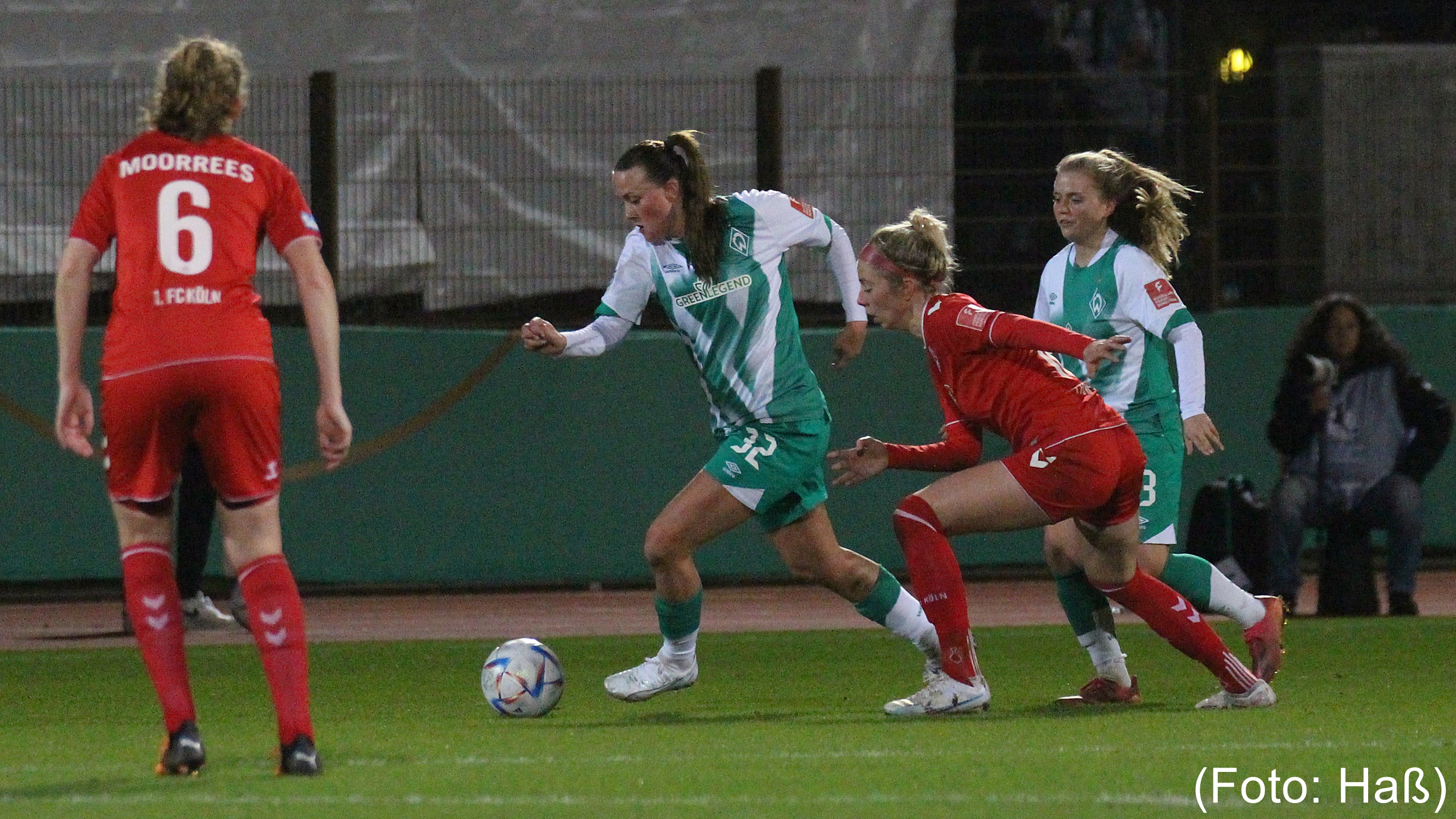 Am 16.Spieltag der FLYERALARM FRAUEN-BUNDESLIGA setzte sich das Bundesligateam des SV Werder Bremen vor einer stimmungsvollen Kulisse mit über 1700 Zuschauern gegen den 1. FC Köln mit 1:0 durch und konnte damit drei weitere wichtige Punkte im Kampf um den Klassenerhalt einfahren.
