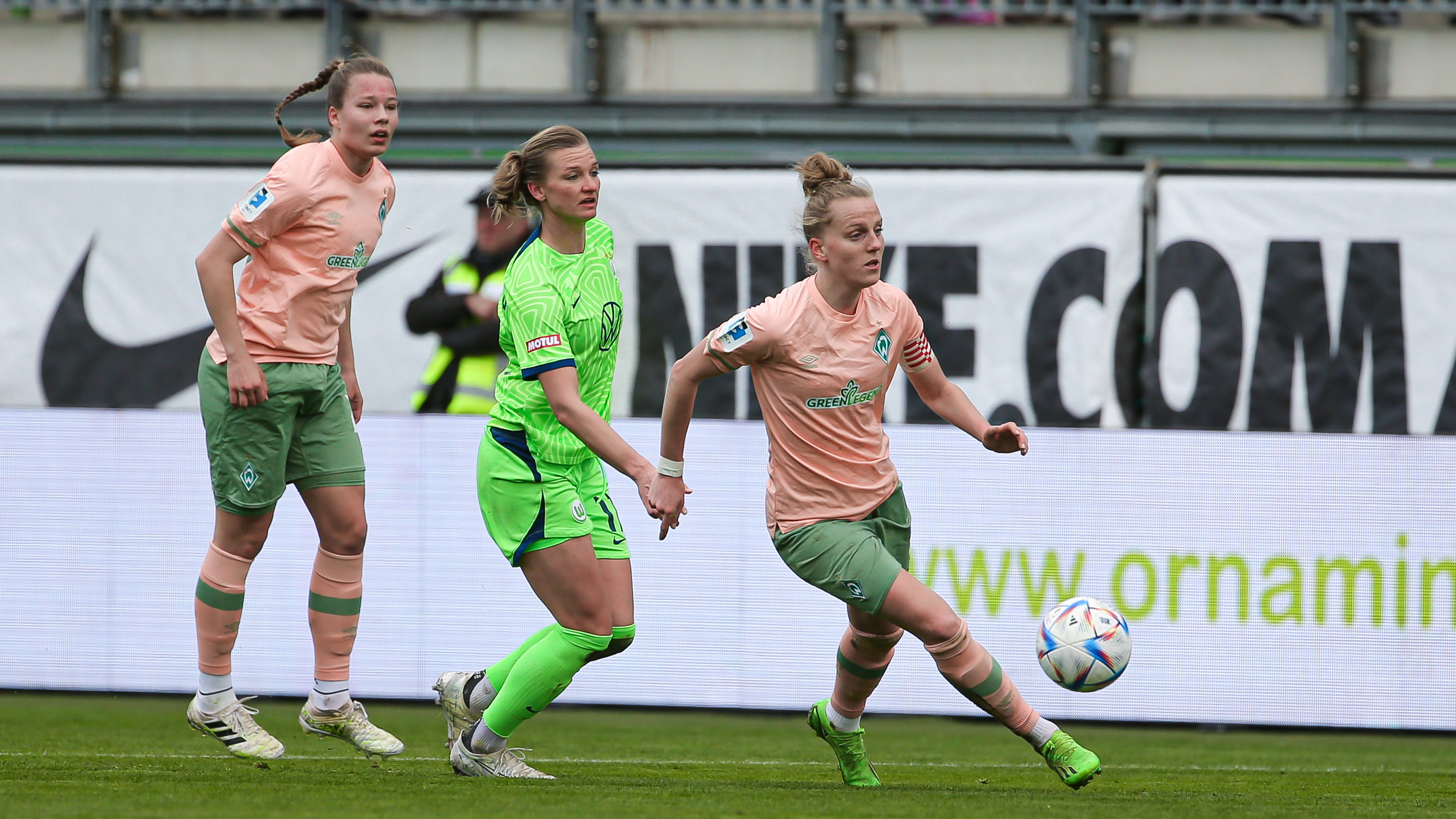 Nach der Halbzeitpause spielte fast nur noch der VFL Wolfsburg und drängte die Werder-Mannschaft zunehmend in die eigene Hälfte und waren dabei auch sehr effizient. Einzig Keeperin Anneke Borbe, die zur nächsten Saison zum VFL Wolfsburg wechselt, war es zu verdanken, dass die Niederlage nicht höher ausfiel. Dabei hatte auf Seiten des VFL Wolfsburg Dominique Janssen Glück, dass zum Spielende ihr Halten an Tuana Keles, die frei vor dem Tor der Wölfinnen wäre, von der Unparteiischen nicht geahndet wurde. Das hätte zur Folge gehabt, dass sie wegen Notbremse kurz vor dem 16er vom Platz hätte gehen müssen. Und das hätte die Schiedsrichterin, die gutes Sichtfeld hatte, auch sehen müssen.