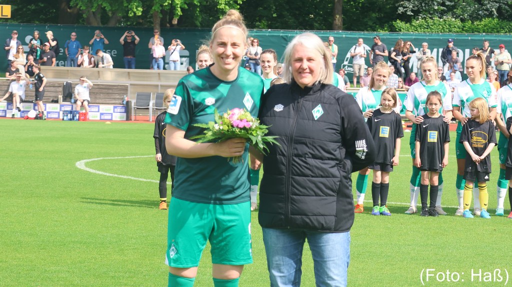 Vor der Begegnung würde Katharina Schiechtl für ihren 200. Pflichtspieleinsatz für Werder Bremen (am 19. Spieltag in Freiburg) von Abteilungsleiterin Birte Brüggemann geehrt. Sie ist damit erst die vierte Spielerin im Club der 200er