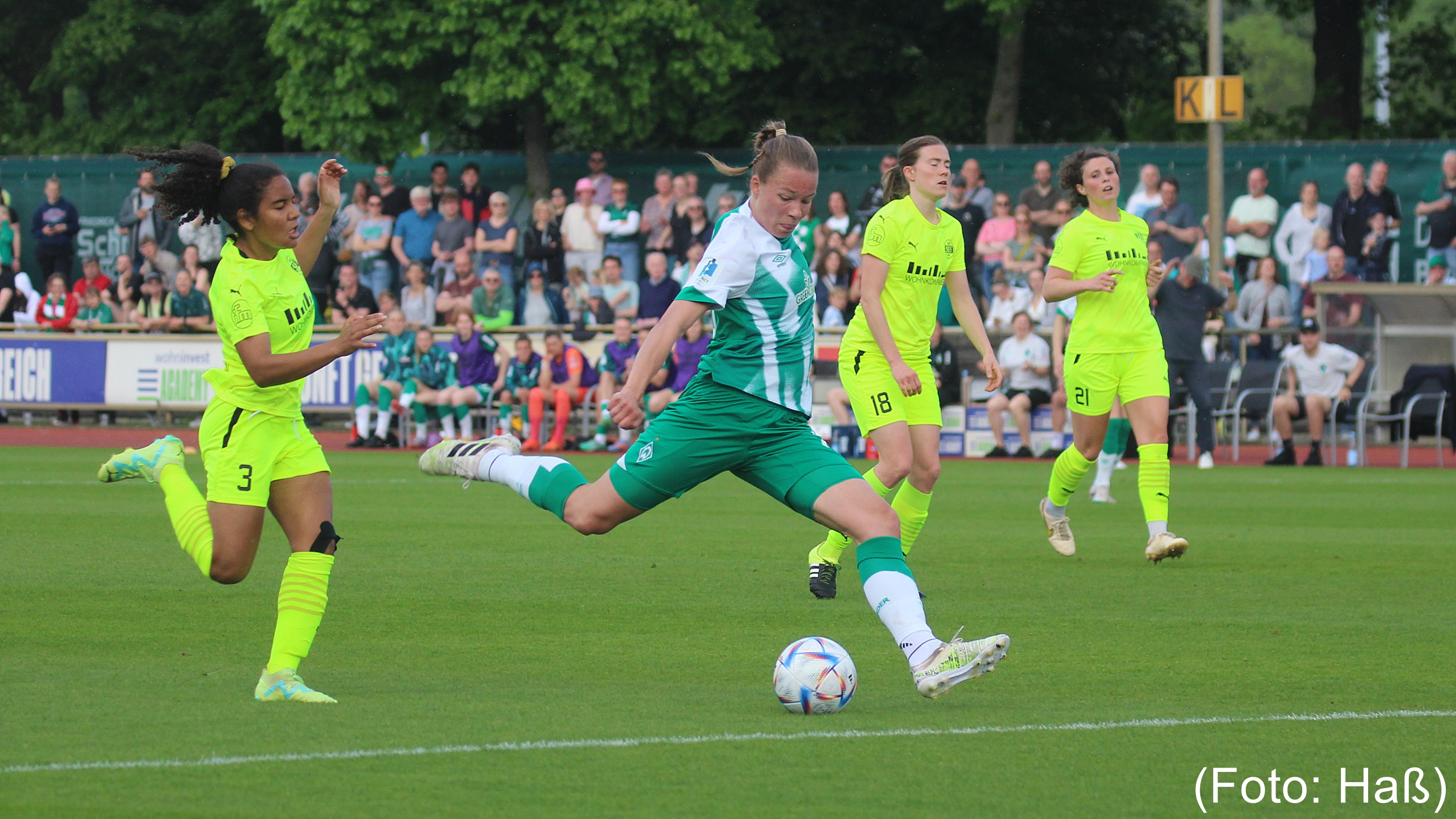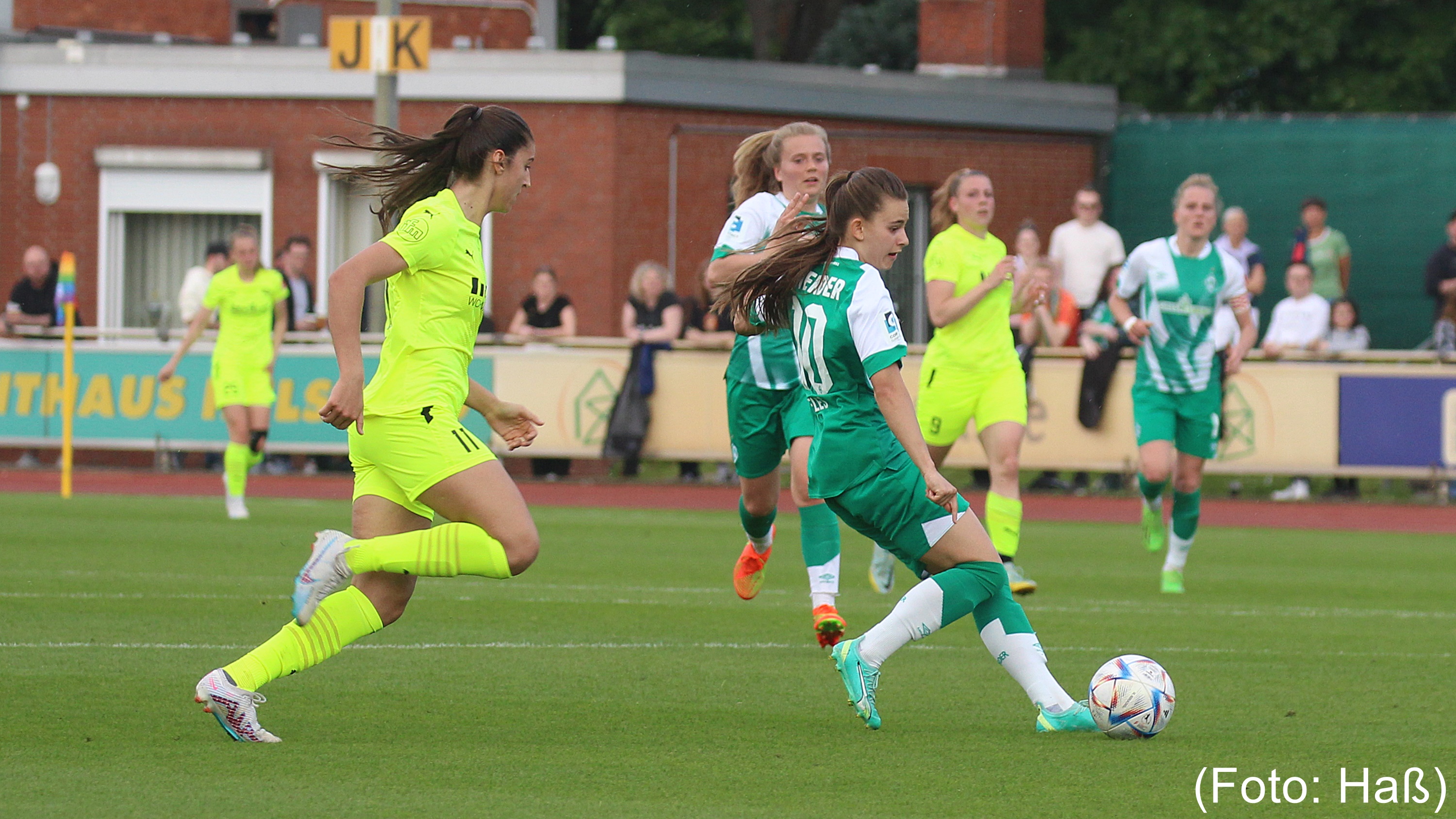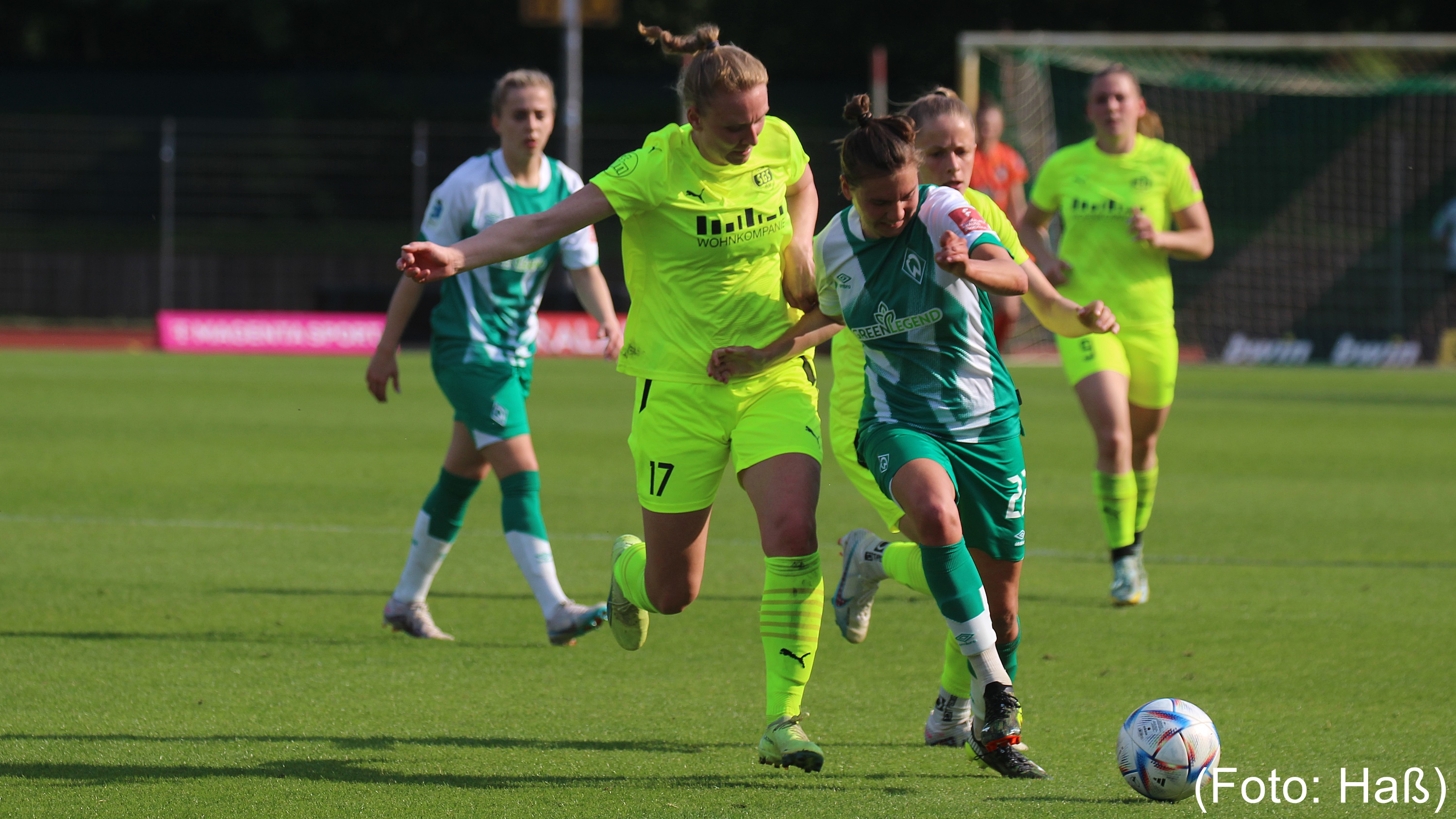 Die Begegnung war an Spannung nicht zu überbieten. Die Frauen vom SV Werder Bremen zeigten zwar nicht ihr bestes Bundligaspiel in dieser Saison, jedoch mit viel Willenskraft und einer deutlichen Leistungssteigerung in der 2. Halbzeit setzten sie sich trotz zweimaligem Rückstand mit 3:2 durch.