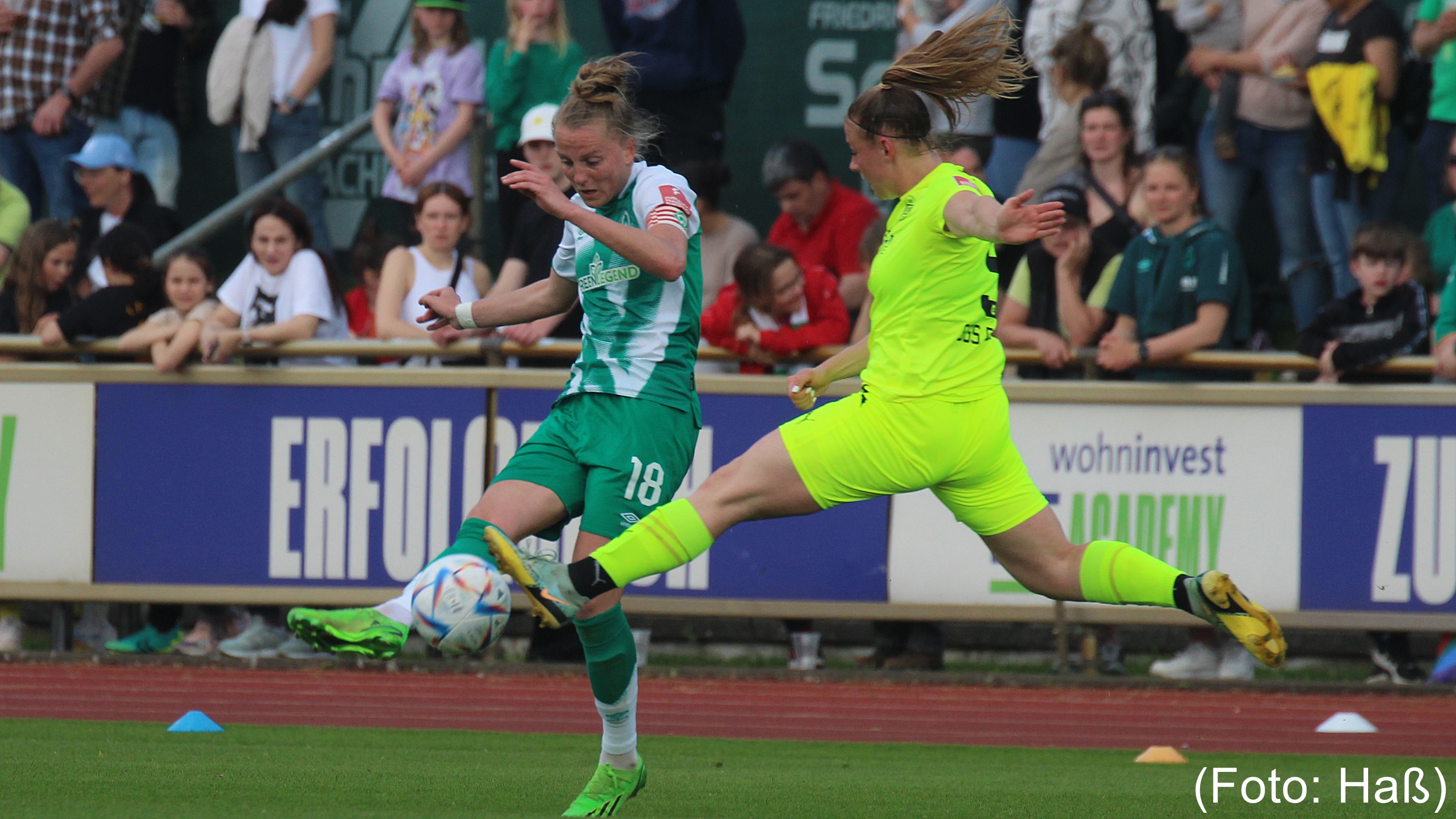 20. Spieltag der FLYERALARM FRAUEN-BUNDESLIGA: Trotz zweimaligem Rückstand bezwingt die Bundesligamannschaft des SV Werder Bremen die SGS Essen mit 3:2 und haben bei noch zwei ausstehenden Spielen 6 Punkte Vorsprung auf den ersten Abstiegsplatz.