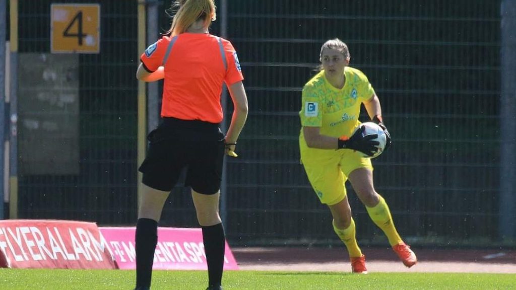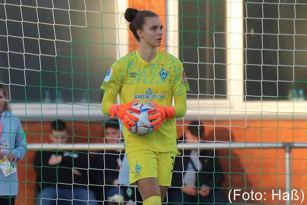 Anneke Borbe schloss sich 2015 zunächst den U17-Juniorinnen des SV Werder Bremen an. Die damalige U-Nationalspielerin wurde in der Saison 2016/17 beim 2. Ligaspiel in Jena in der höchsten Bundesligaklasse mit 16 Jahren ins kalte Wasser geworfen und stand in der Startelf. Wie schon beschrieben aufgrund eines Wadenbeinbruchs von Lena Pauels. Von ihr und auch von Katharina Schiechtl, die damals ihre Mentorin war, meisterte sie die Aufgaben. Besonders in Erinnerung soll uns dabei das Ligaspiel gegen Turbine Potsdam in der Erinnerung bleiben, wo sie die Potsdamer Spielerinnnen durch glänzende Paraden zur Verzweiflung gebracht hatte. Für manch ein Anhänger/in in Potsdam wird sie noch heute mit diesem Spiel in Verbindung gebracht. Die folgenden Jahre war zu zumeist die Nummer 2 hinter Lena Pauels und zu Stellle wenn sie gebraucht wurde. Erst in der Saison 2021/22 setzte sie sich zur Nummer 1 im Werder Tor durch und zeichnete sich durch mehrfach durch und war ein wesentlicher Faktor dafür, dass Werder Bremen erstklassig geblieben ist. Nun folgt sie dem Lockruf vom VFL Wolfsburg und wir wünschen ihr dabei alles Gute und Einsatzzeiten.
