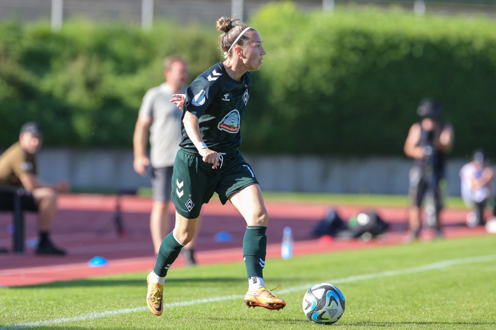 In der zweiten Halbzeit plätscherte das Spiel zunehmend dahin, wobei beide Teams sich nicht viele Chancen herausspielen konnten. Geschuldet war dies sicherlich auch den hohen sommerlichen Temperaturen von über 30 Grad. Zum Spielende hin konnten die Grün-Weißen das Tempo noch einmal erhöhen, wo dann die zuvor eingewechselte Melina Kunkel, in ihrem Pflichtspieldebüt für Werder Bremen, zum 3:0 Endstand (90.+2) aus Sicht der Grün-Weißen traf.