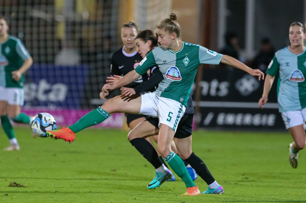 Zunächst waren die Grün-Weißen mutiger gestartet, doch mit zunehmender Spieldauer dominierten die Gäste aus Frankfurt die Partie. So gingen sie in der 26. Minute durch Nicole Anyomi in Führung. Den ersten Abschluss durch Laura Freugang konnte Werders Keeperin Livia Peng noch parieren, der Abpraller landete bei Anyomi, die über Werders Keeperin ins Tor hob. Werder blieb im weiteren Verlauf weiter zu harmlos und so blieb es beim 0:1.