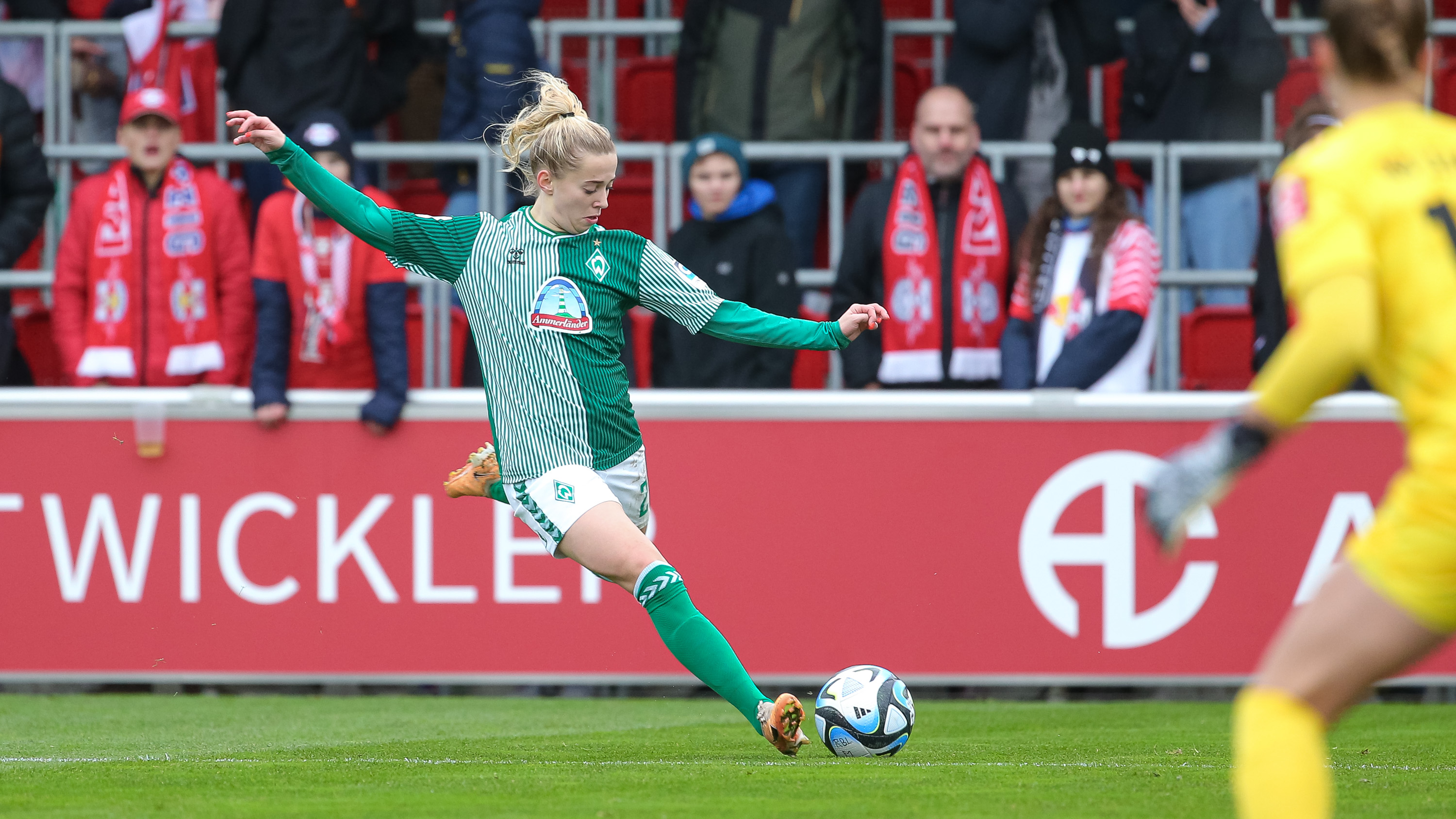 In der zweiten Hälfte konnte Werder II die Partie dann drehen. Erst traf Manuela Schreier zum 1:1 (66.), ehe Amani Mahmoud einen Elfmeter in der 84. Minute zum 2:1-Siegtreffer verwandelte.