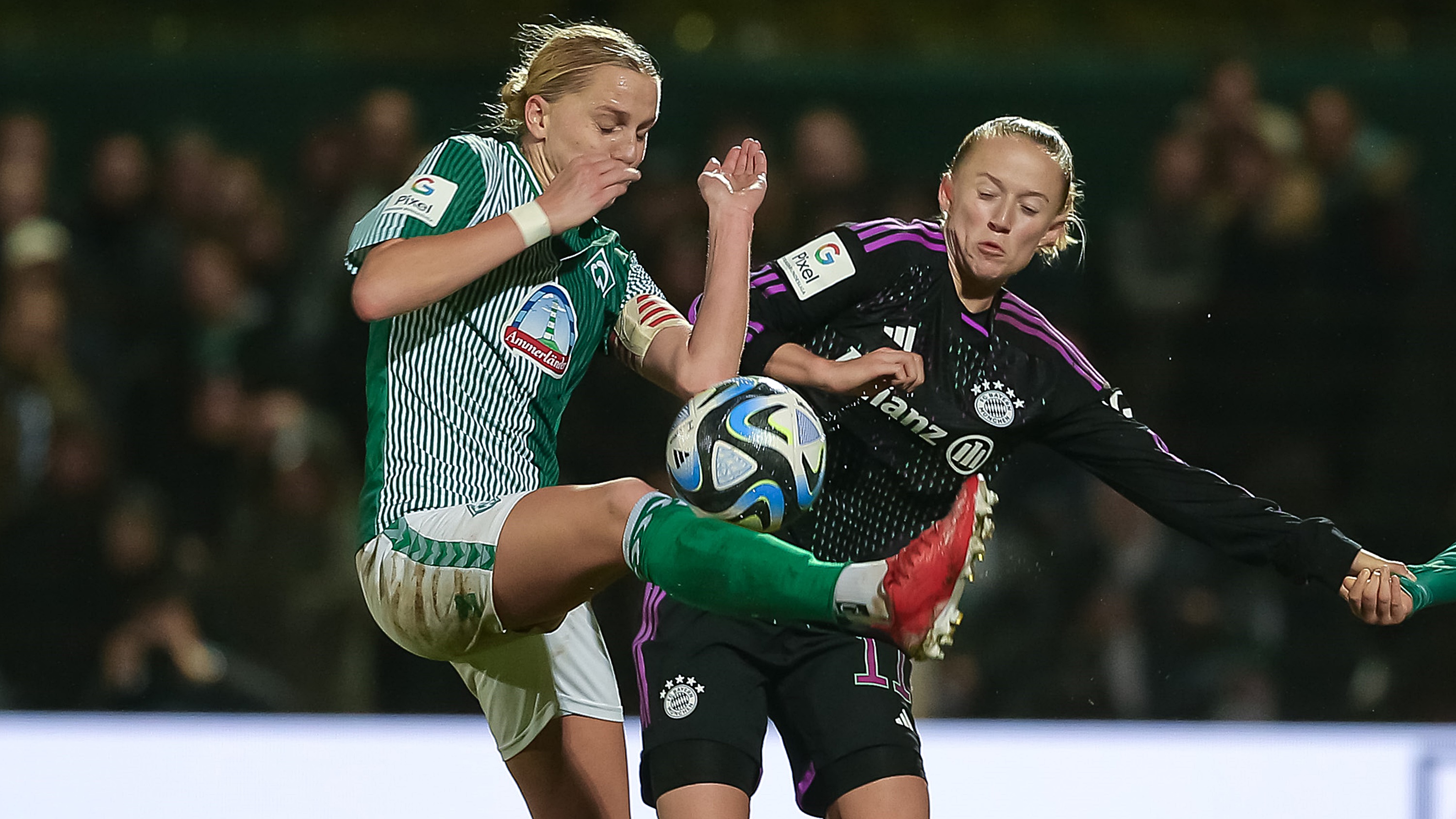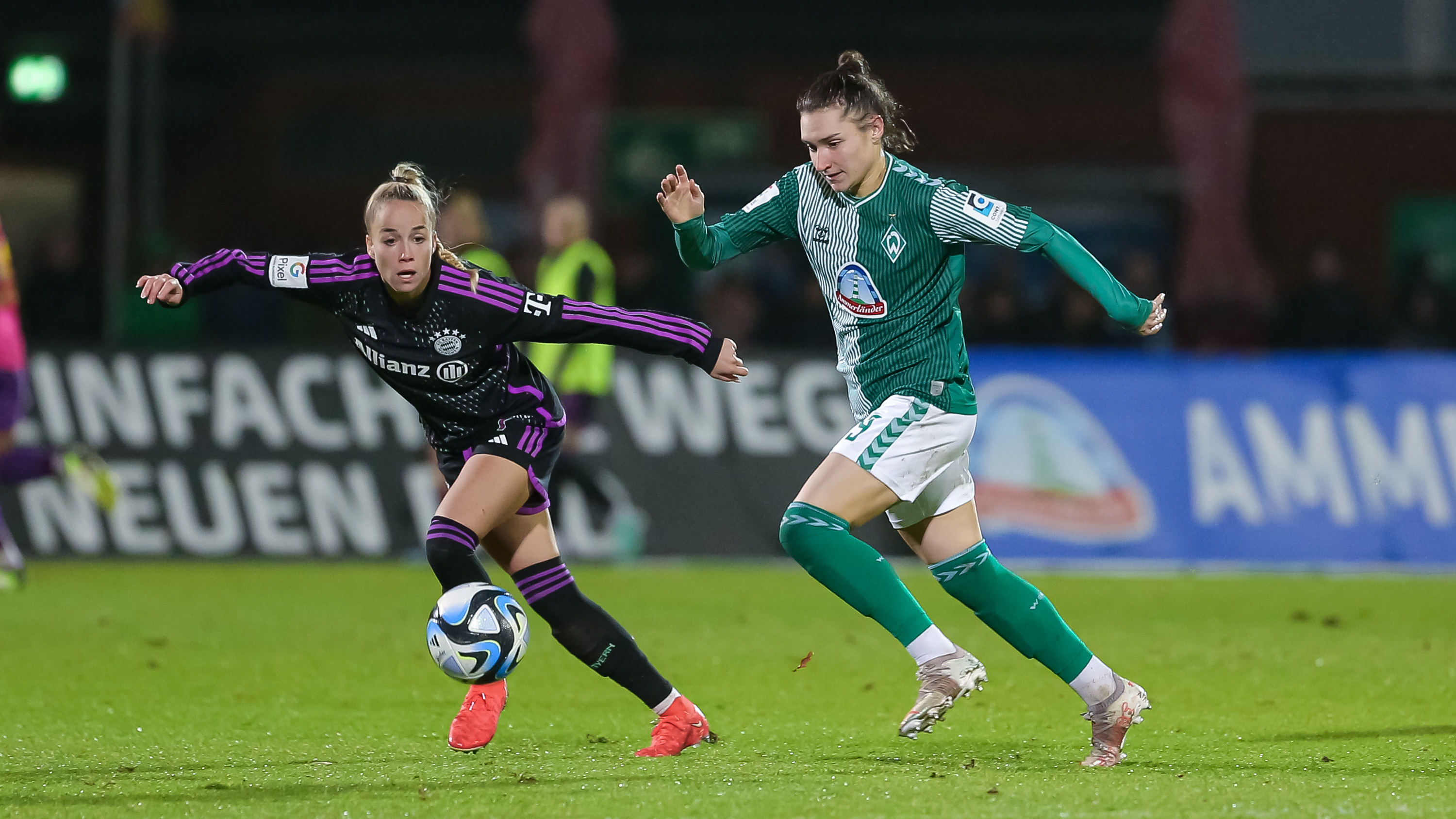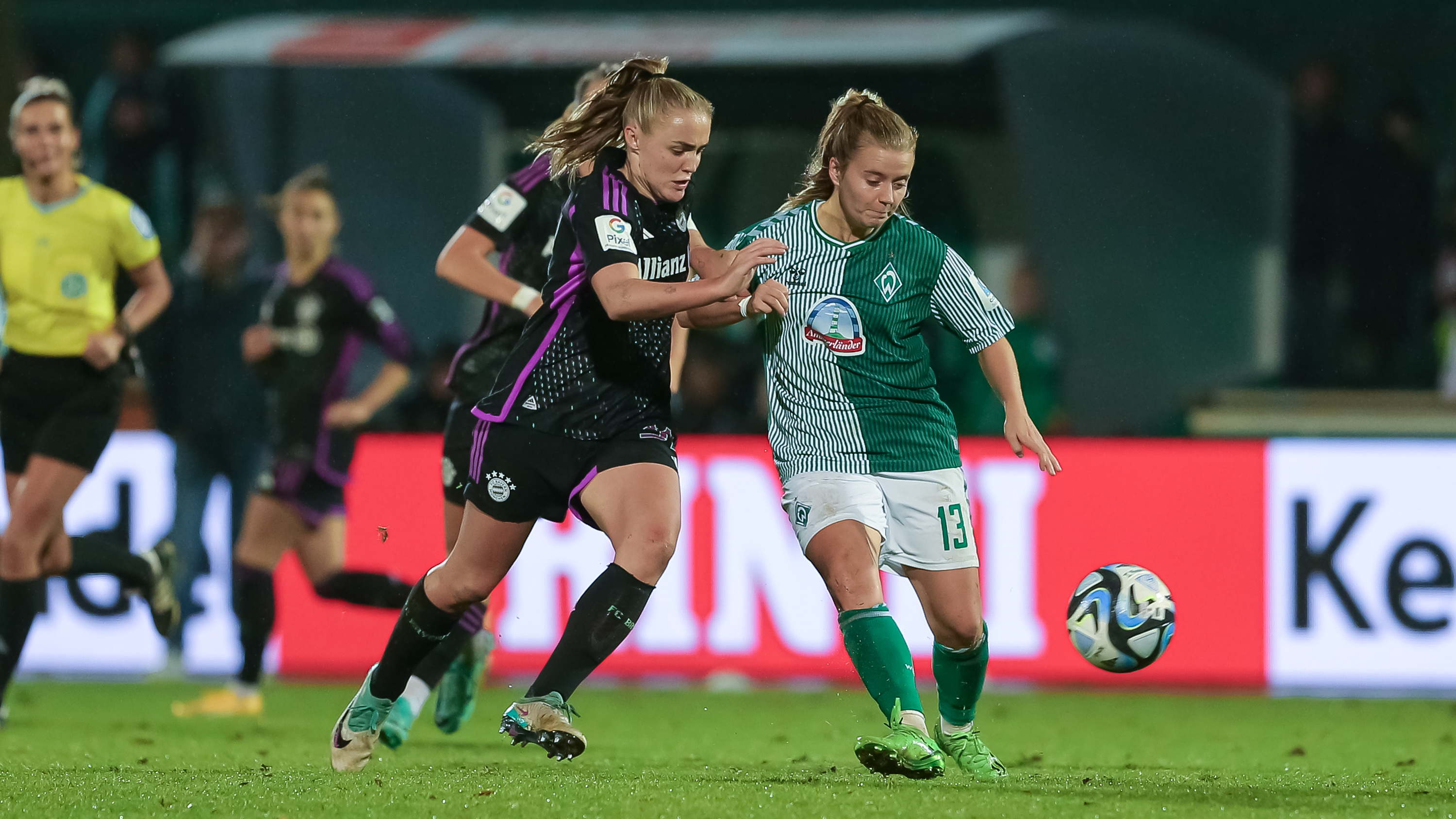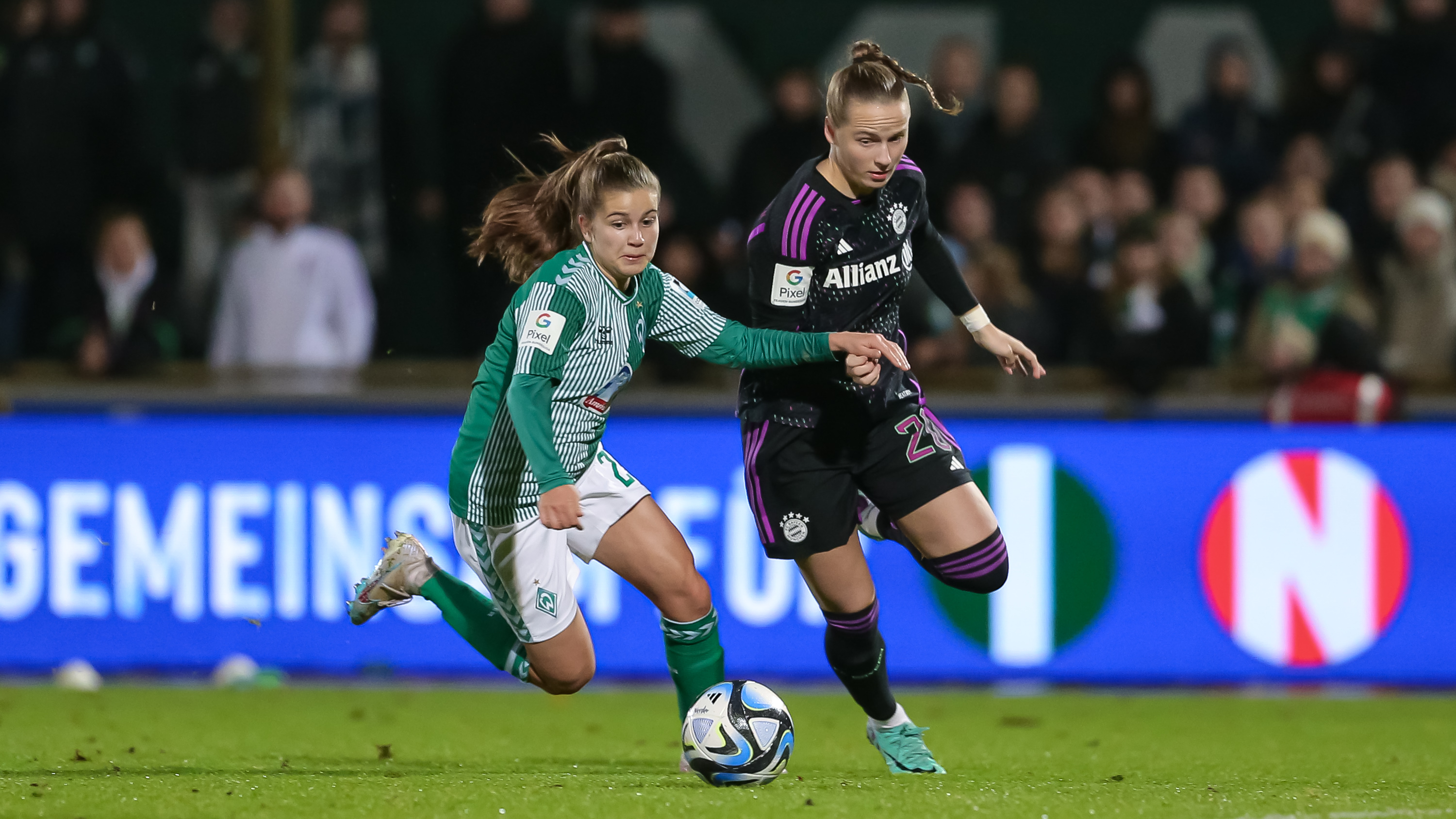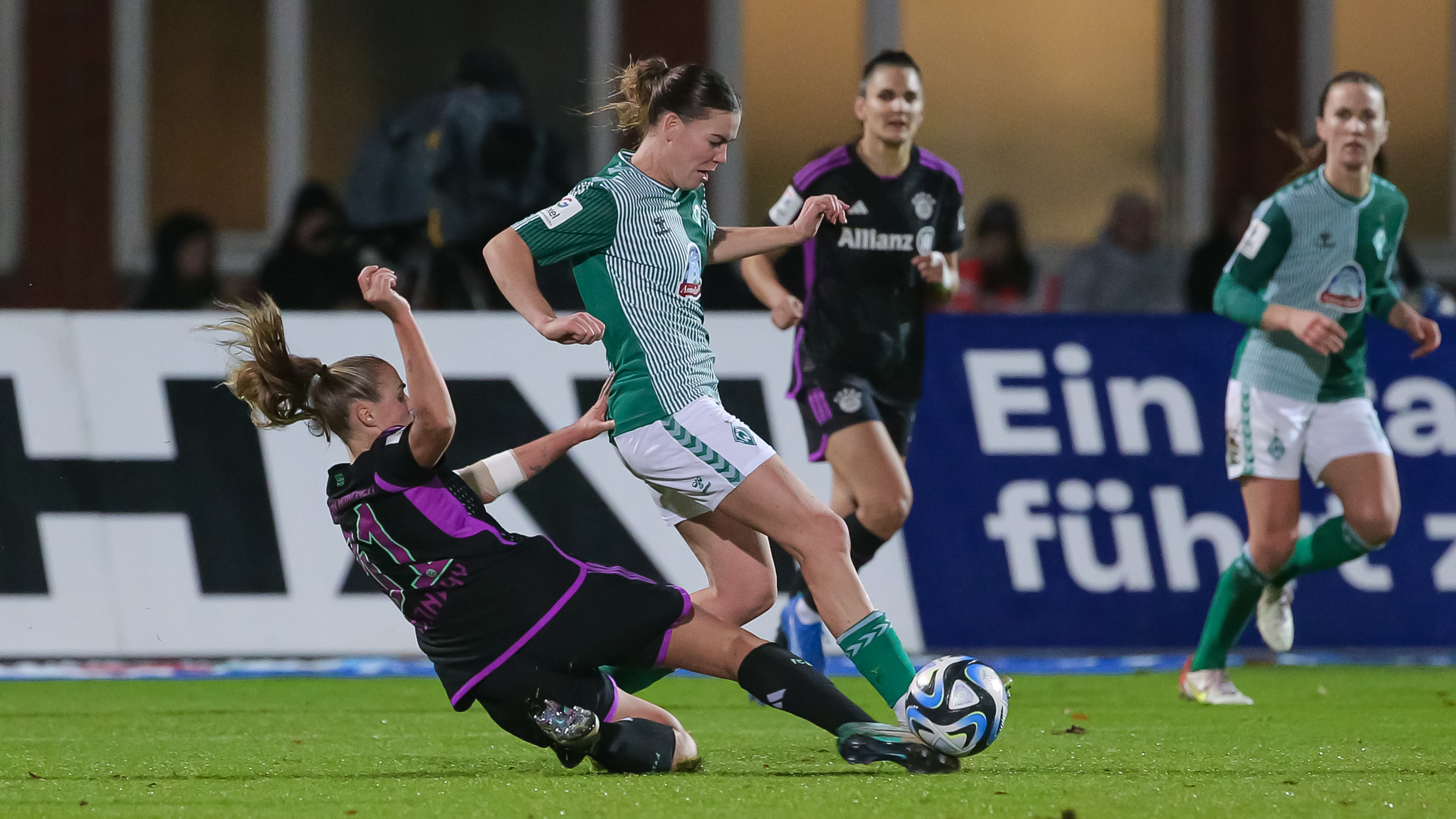 Trotz dieser umstrittenen Entscheidung fand das Grün-Weiß-Team seinen Mut wieder und spielte kühn mit, obwohl es keine eigene Torchance generieren konnte. In der 24. Minute folgte jedoch der nächste Rückschlag, als Katharina Naschenweng nach einem Eckball, bei dem die Abwehr von Werder Bremen ungeordnet war, auf 2:0 für die Gäste erhöhte. Danach dominierten hauptsächlich die Münchnerinnen, während Werders Torhüterin Livia Peng das Spiel mit einigen großartigen Paraden am Leben hielt. Unter anderem behielt sie die Oberhand in einem Eins-gegen-Eins-Duell mit Klara Bühl, die frei vor ihr stand.