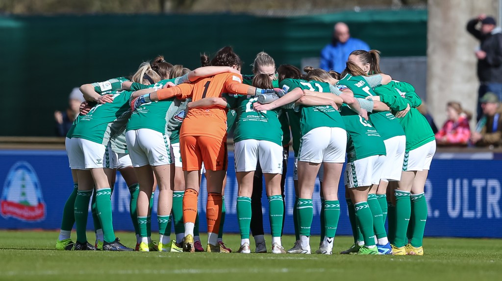 In den Schlussminuten wurde es dann noch einmal turbulent. Nach einer Ecke schoss Maier den Ball mit kanpp über die Querlatte (89′), was die Schlussoffensive von Essen einleitete. Auf der anderen Seite hatte die eingewechselte Jasmin Sehan die Möglichkeit zum Siegtor, traf jedoch den Ball nicht sauber (90′). In der Nachspielzeit mussten unsere Grün-Weißen mehrmals in höchster Not auf der Linie klären, konnten das 0:0 mit vereinter Kraft verteidigen (90.+3′).