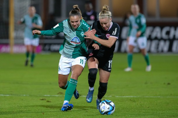Werder Bremen: Das Team von Trainer Thomas Horsch konnte nach zwei Niederlagen nacheinander am vergangenen Samstag gegen die SGS Essen beim 0:0 wieder punkten und stand in der Abwehr wieder kompakt. Sie konnten dabei durch ihre Robustheit und Zweikampfstärke wieder überzeugen und zu alter Stärke finden. Leider wird Juliane Wirtz aufgrund einer Gelbsperre (5. Gelbe Karte) in Frankfurt fehlen.