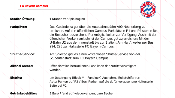 Wir haben wichtige Informationen von der Fanbetreuung des SV Werder Bremen für das anstehende Auswärtsspiel am 22. April um 19:30 Uhr in München erhalten: