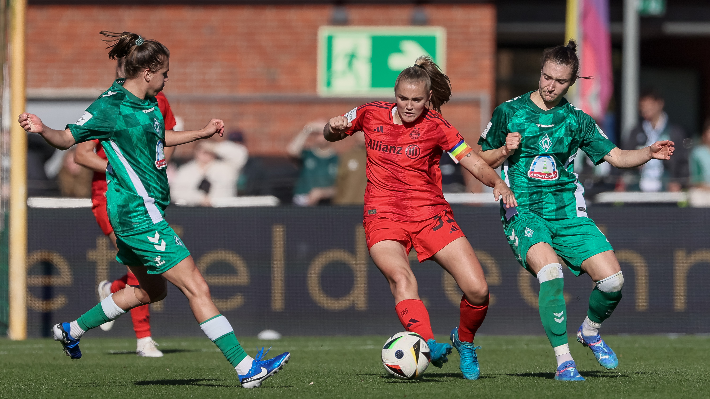Von Beginn an dominierten die Münchnerinnen das Spiel und erarbeiteten sich früh starke Chancen. Bereits in der 6. Minute fand der Ball das erste Mal den Weg ins Bremer Tor, doch der Treffer wurde wegen Abseits nicht anerkannt. Die Bayern-Damen ließen nicht locker und setzten die Bremer Defensive stark unter Druck. Doch die Bremer Torfrau Livia Peng zeigte mehrmals ihr Können und hielt ihr Team im Spiel.