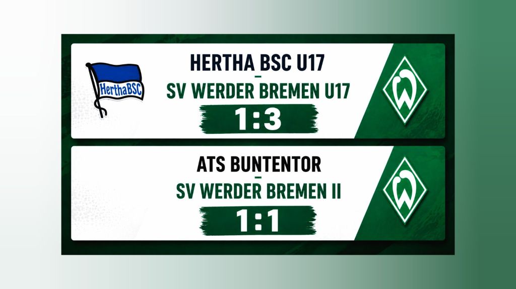 Die U17-Juniorinnen des SV Werder Bremen haben in der Goldrunde der Regionalliga Nord einen wichtigen Auswärtssieg gefeiert. Bei Hertha BSC setzten sich die Bremerinnen mit 3:1 durch und bleiben damit in der Spitzengruppe. Wenig später holte Werder II in der Frauen-Regionalliga Nord beim Stadtderby gegen ATS Buntentor nach frühem Rückstand noch ein 1:1.