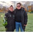 Nach dem Spiel der U17-Juniorinnen ehrte der Fanclub Jasmin Sehan mit einem Blumenstrauß als Co-Trainerin, dankte ihr für ihre Zeit als Spielerin und wünschte ihr viel Erfolg in der neuen Rolle.